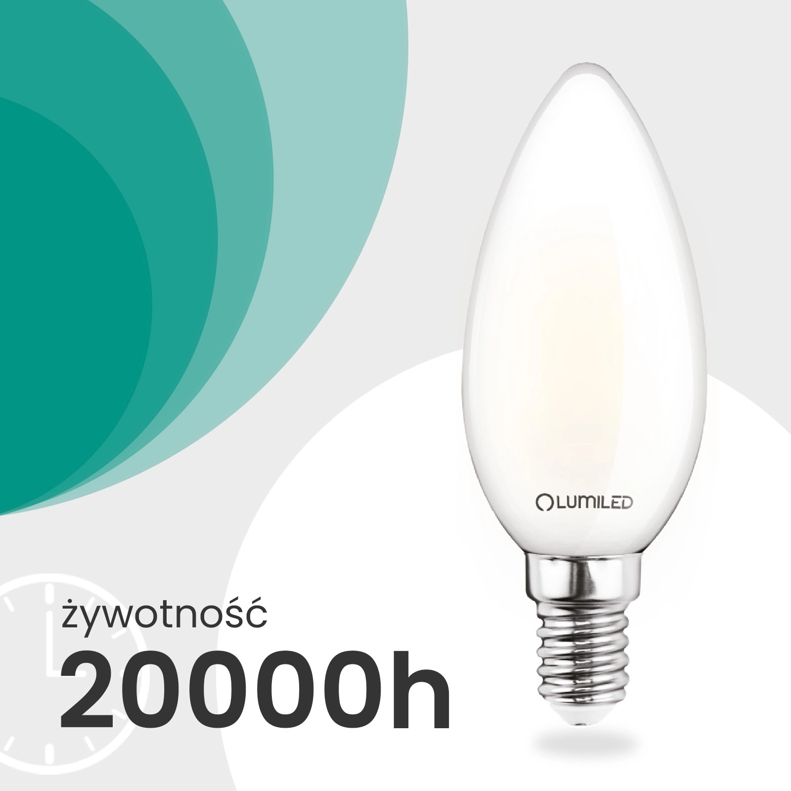 10x Żarówka LED E14 Świeczka B35 2,2W 470lm = 40W 2700K Ciepła 360° Filament KLASA A LUMILED - czwarta cecha produktu
