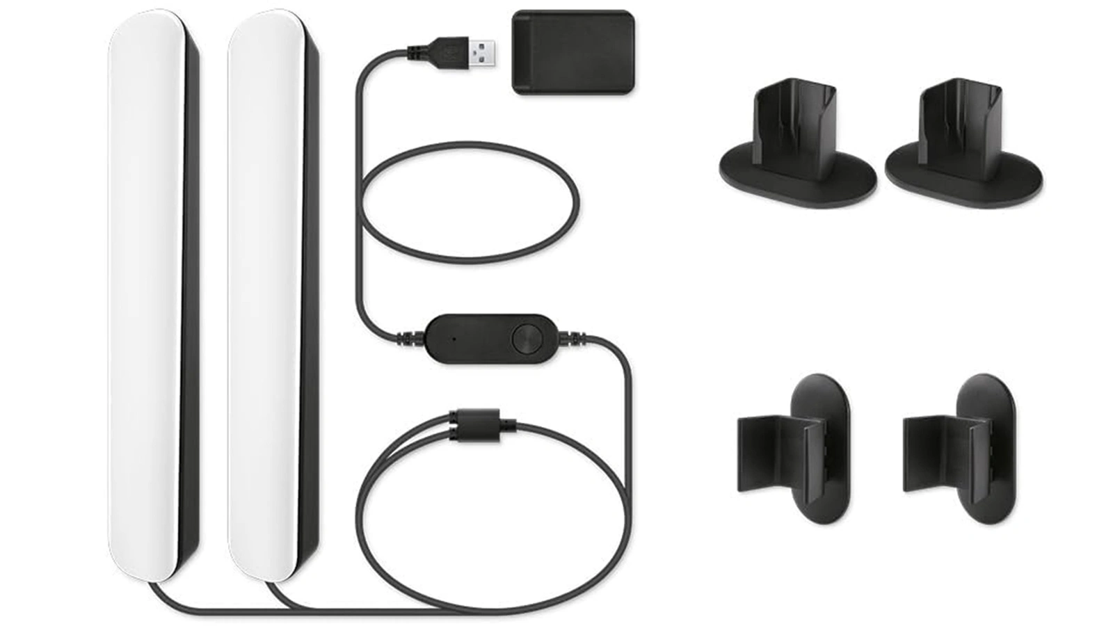 - Elastyczny montaż: Zamontuj lampy za monitorem, postaw obok telewizora lub połóż je poziomo – tak, jak Ci wygodnie.