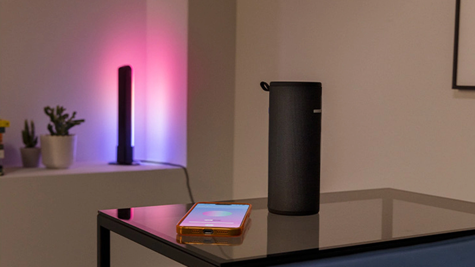 Zanurz się w rytmie i spraw, by światło tańczyło razem z dźwiękiem. Dzięki funkcji synchronizacji z muzyką Twoje oświetlenie pulsuje i zmienia kolory w czasie rzeczywistym, dopasowując się do tempa i klimatu utworów. To idealny sposób na stworzenie wyjątkowego nastroju – podczas imprezy, relaksu czy domowego koncertu. Wystarczy, że trzymasz smartfon blisko głośnika, a system WiZ sam zsynchronizuje dźwięk ze światłem – bez kabli, mikrofonów i skomplikowanej konfiguracji.