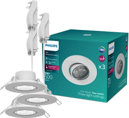 3x Oprawa Podtynkowa Wpuszczana LED 5W 500lm 2700K Ciepła Ruchoma Okrągła biały Ściemnialna 3-STEP SceneSwitch Cilantro Philips