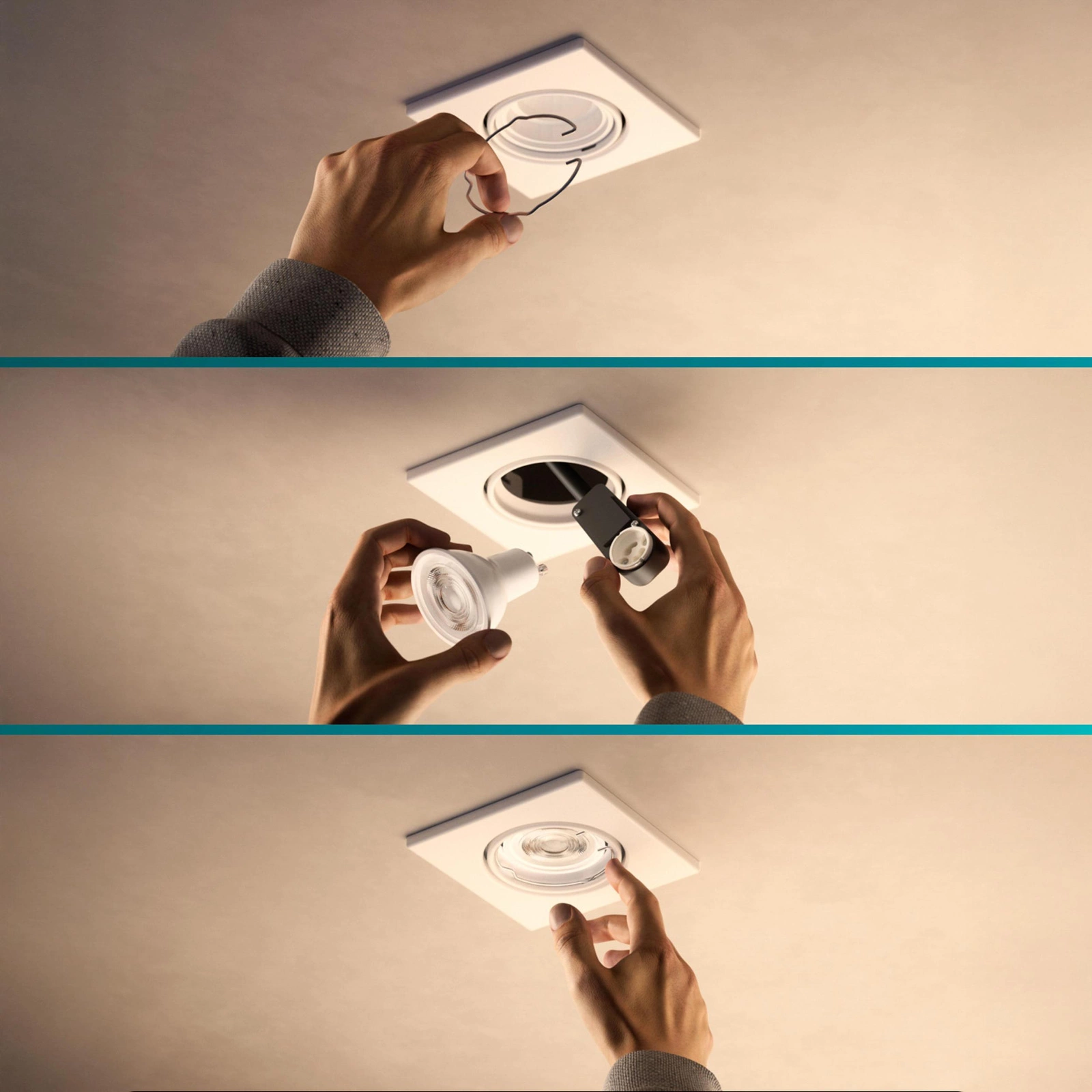 Oprawa Philips Peridot sprzedawana jest bez żarówki, dzięki czemu możesz samodzielnie dobrać źródło światła dopasowane do swoich potrzeb. Aby uzyskać maksymalny komfort użytkowania, zalecamy stosowanie żarówek Philips z oznaczeniem EyeComfort, które emitują światło przyjazne dla oczu – bez migotania i efektu olśnienia. Takie rozwiązanie pozwala stworzyć przyjemną atmosferę w każdym pomieszczeniu, dbając o zdrowie wzroku Twojego i Twoich bliskich.
