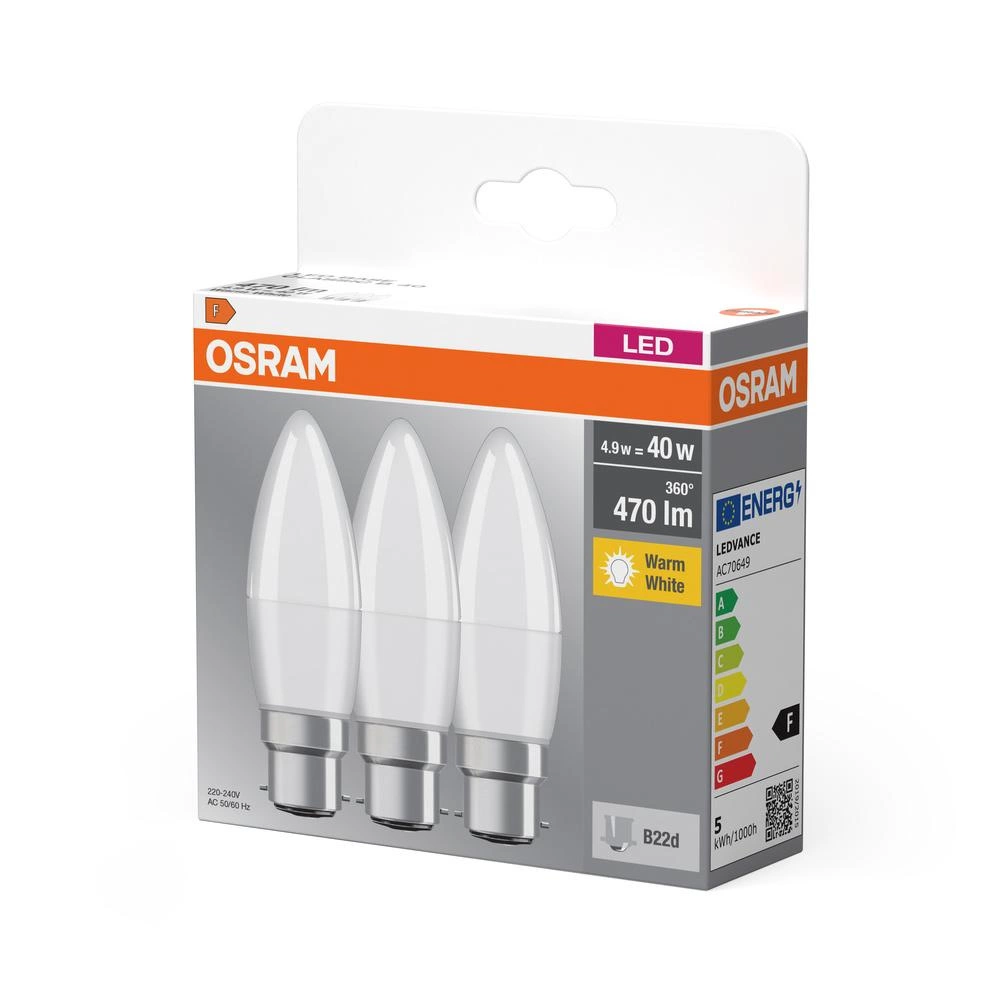 Odkryj niesamowite właściwości żarówek LED OSRAM z serii BASE CLASSIC, które harmonijnie łączą w sobie jakość, styl i nowoczesność. Te eleganckie, świeczkowe żarówki o trzonku B22d to idealne rozwiązanie dla każdego wnętrza, emitując przyjemne ciepłe światło o temperaturze barwowej 2700K. Wysoka skuteczność świetlna na poziomie 96 lm/W zapewnia wydajne oświetlenie przy niskim zużyciu energii, które wynosi zaledwie 5 kWh. Zastosowanie najnowszych technologii gwarantuje długą żywotność, aż do 10000 godzin, co oznacza mniej częstą wymianę i mniejsze rachunki za prąd.