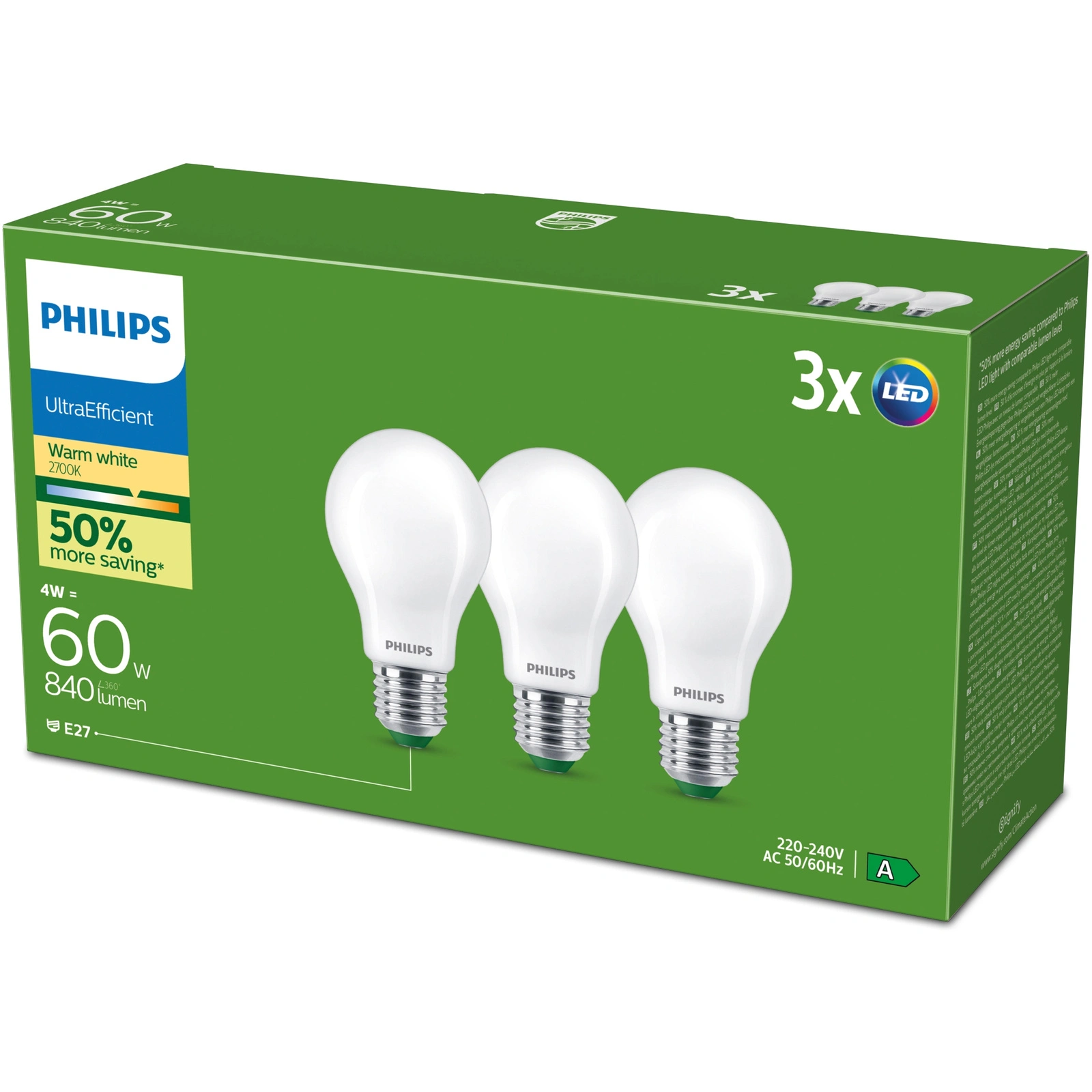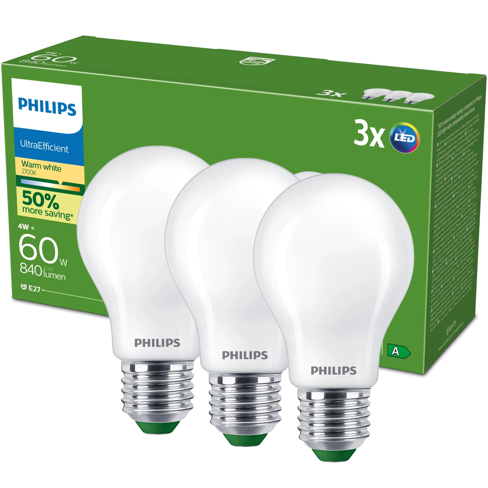 Odkryj wyjątkową wydajność i energooszczędność z zestawem trzech żarówek LED Philips o mocy 4W, które są odpowiednikiem tradycyjnych żarówek 60W. Dzięki niezwykle wysokiej skuteczności świetlnej na poziomie 210 lm/W, te żarówki zapewniają strumień świetlny o wartości 840 lm. Z barwą światła ciepłego białego o temperaturze 2700K, stworzysz przytulną atmosferę w każdym pomieszczeniu.