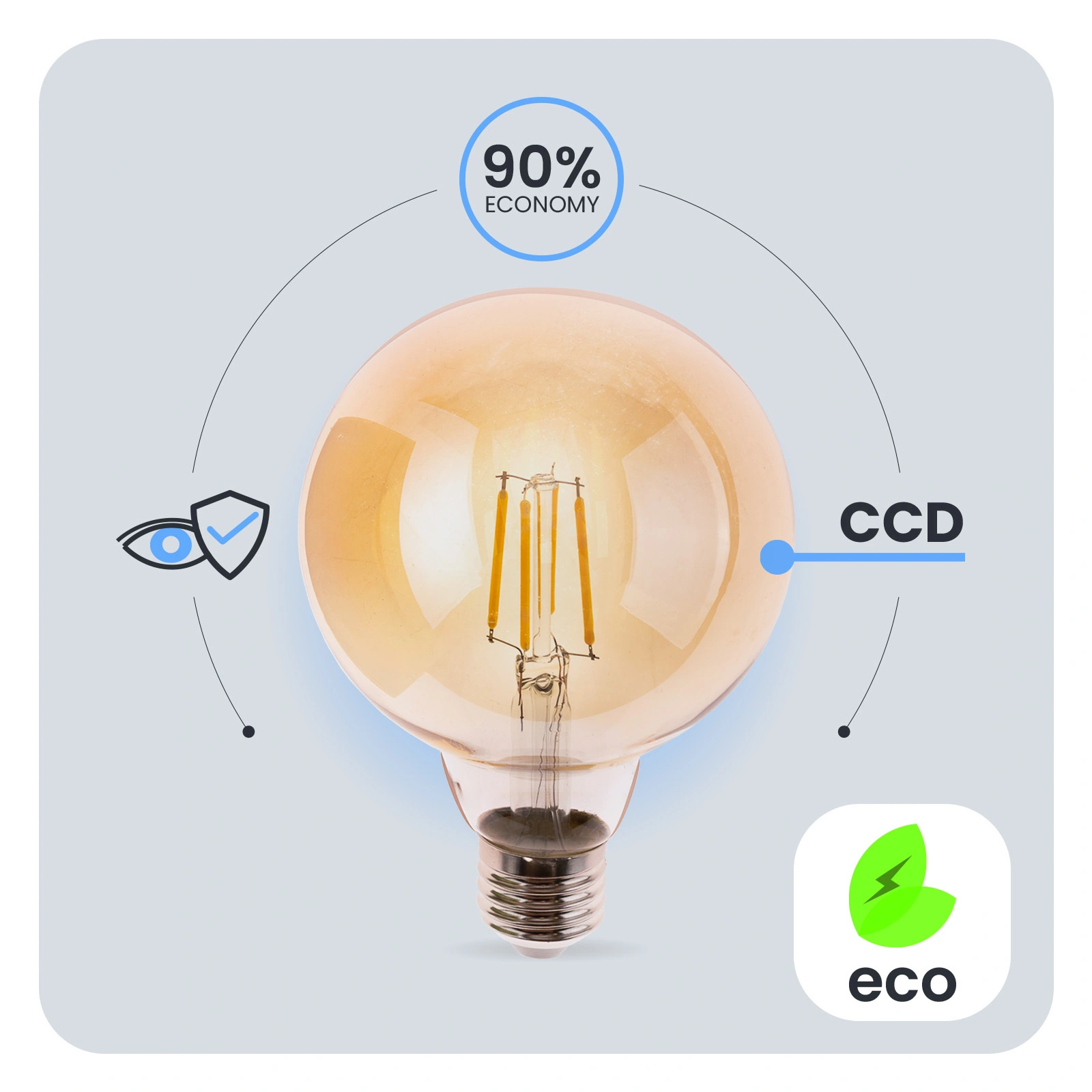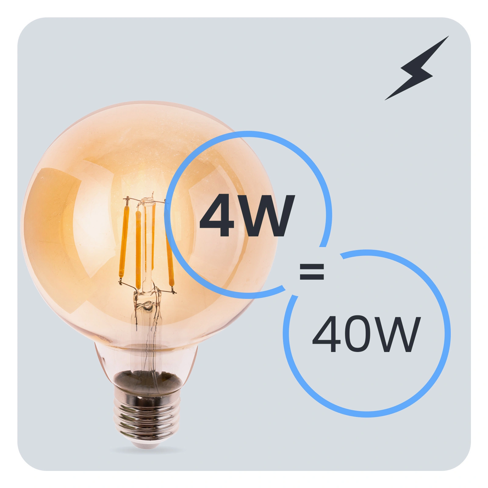 3x Żarówka LED E27 Kula G95 4W = 40W 470LM 2000K Ciepła 360° Bursztynowa Filament LUMILED