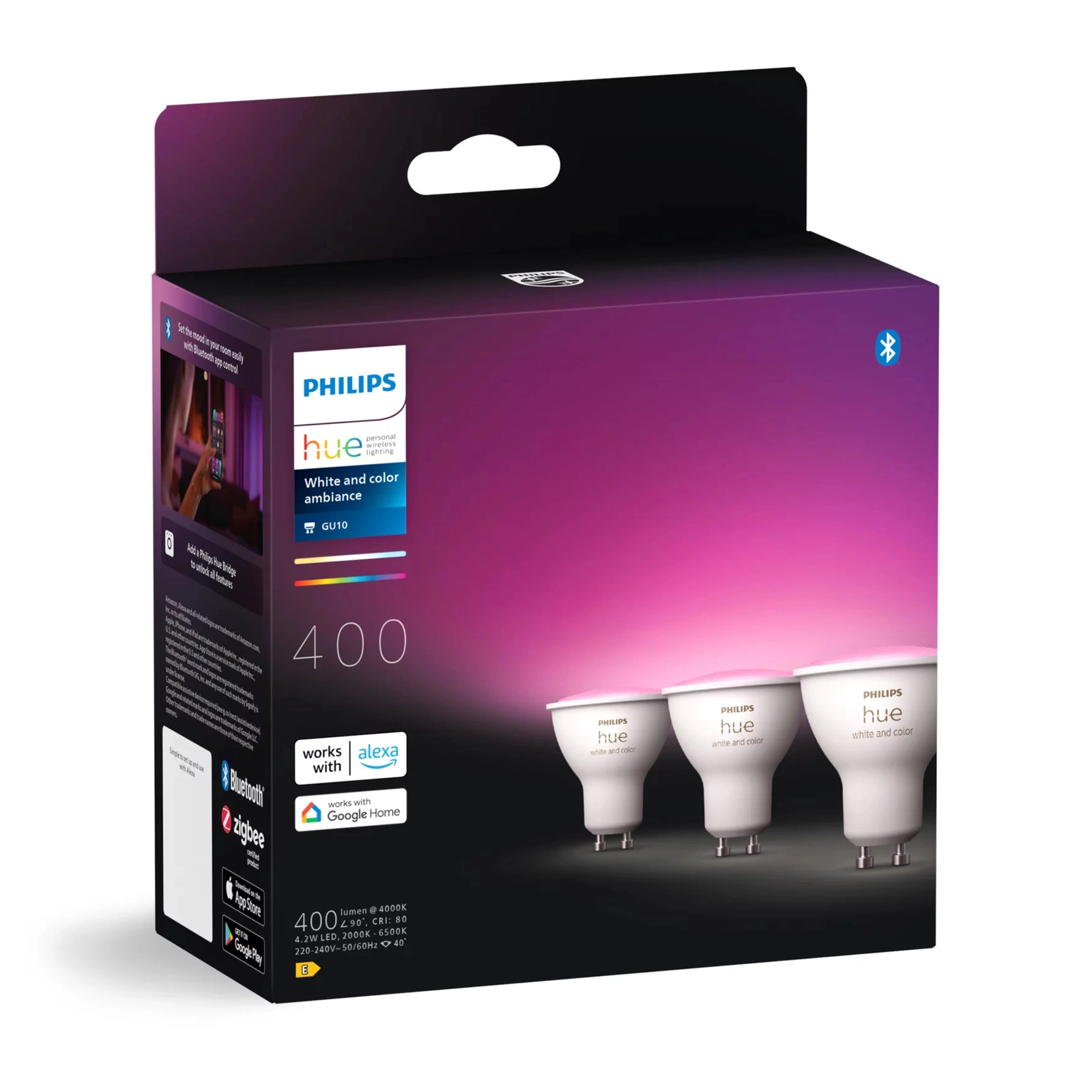 3x Żarówka LED GU10 Reflektor 4.2W = 50W 400lm 2000-6500K CCT + RGB SMART Inteligentna Bluetooth ZigBee White and Color Ambiance Philips HUE