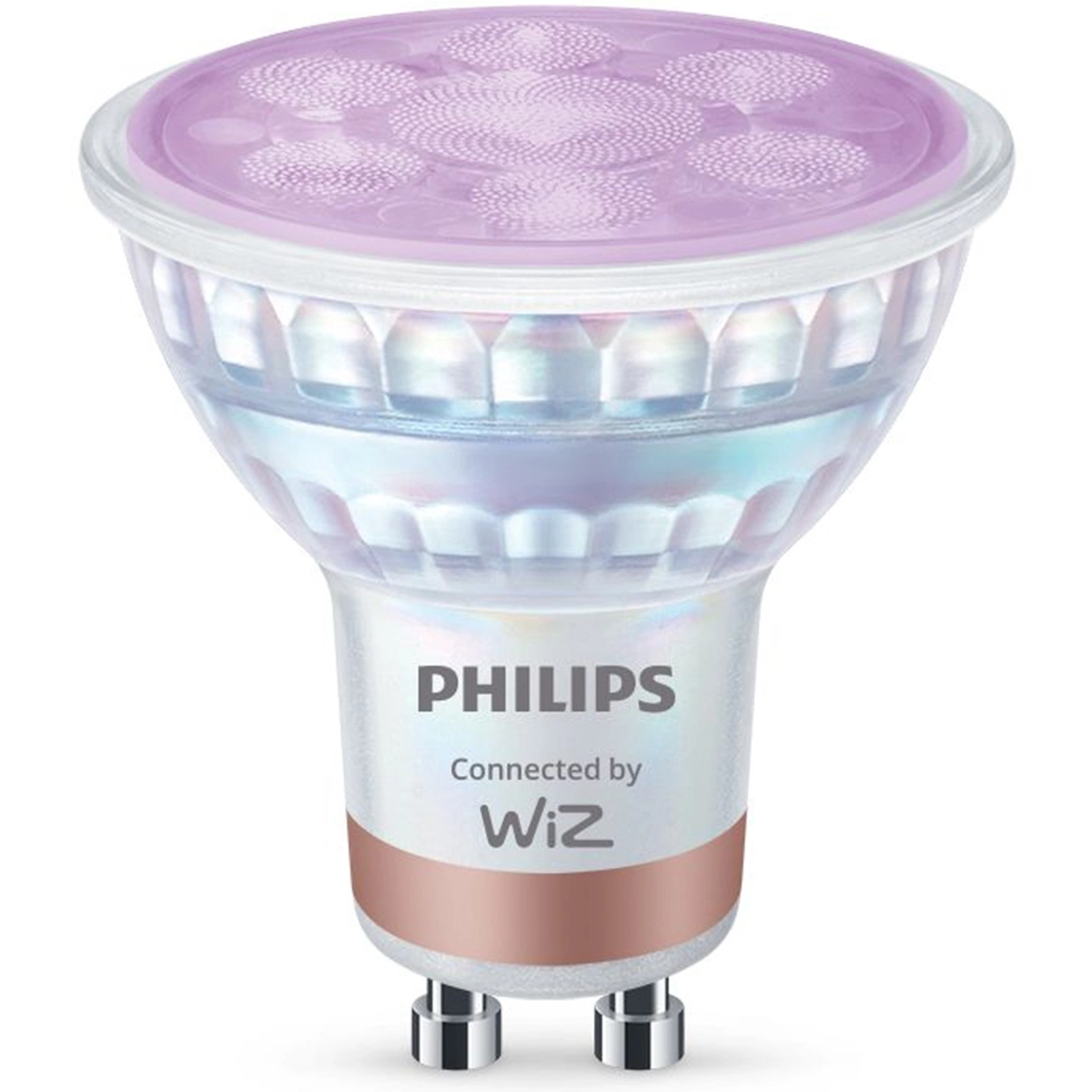 Komplet inteligentnych żarówek LED marki Philips sterowanych za pomocą aplikacji mobilnej WiZ Connected. Żarówki LED cechują się bardzo dobrą jakością emitowanego światła, wiernym odwzorowaniem kolorów (CRI90) oraz wysoką skutecznością świetlną. Żarówka LED Philips Smart LED została wyposażona w energooszczędne źródło światła LED o mocy 4,7W (odpowiednik tradycyjnej żarówki o mocy 50W), strumieniu świetlnym równym 345lm, a dzięki aplikacji mobilnej WiZ Connected możemy regulować temperaturę barwy żarówki w zakresie od przyjemnej ciepłej poprzez neutralną, aż do zimnej oraz wielokolorową (RGB).