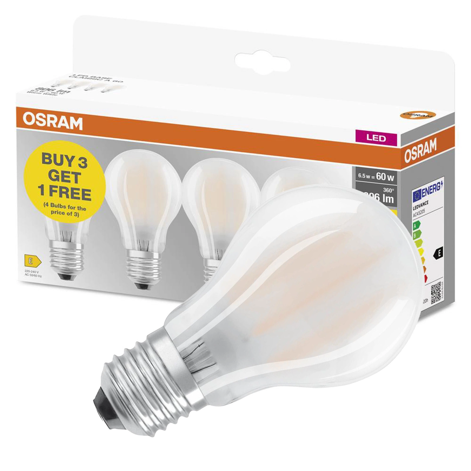 Ekskluzywna oferta dla miłośników oszczędności i efektywnego oświetlenia: zestaw 4 żarówek LED A60 E27 marki Osram. Te wysokiej klasy źródła światła o mocy 6.5W zapewniają jasność odpowiadającą klasycznej żarówce o mocy 60W, co oznacza większą wydajność przy mniejszym zużyciu energii. Dzięki ciepłej barwie światła (2700K), żarówki idealnie komponują się z każdym wnętrzem, tworząc przytulną atmosferę, która sprzyja relaksowi i wypoczynkowi.