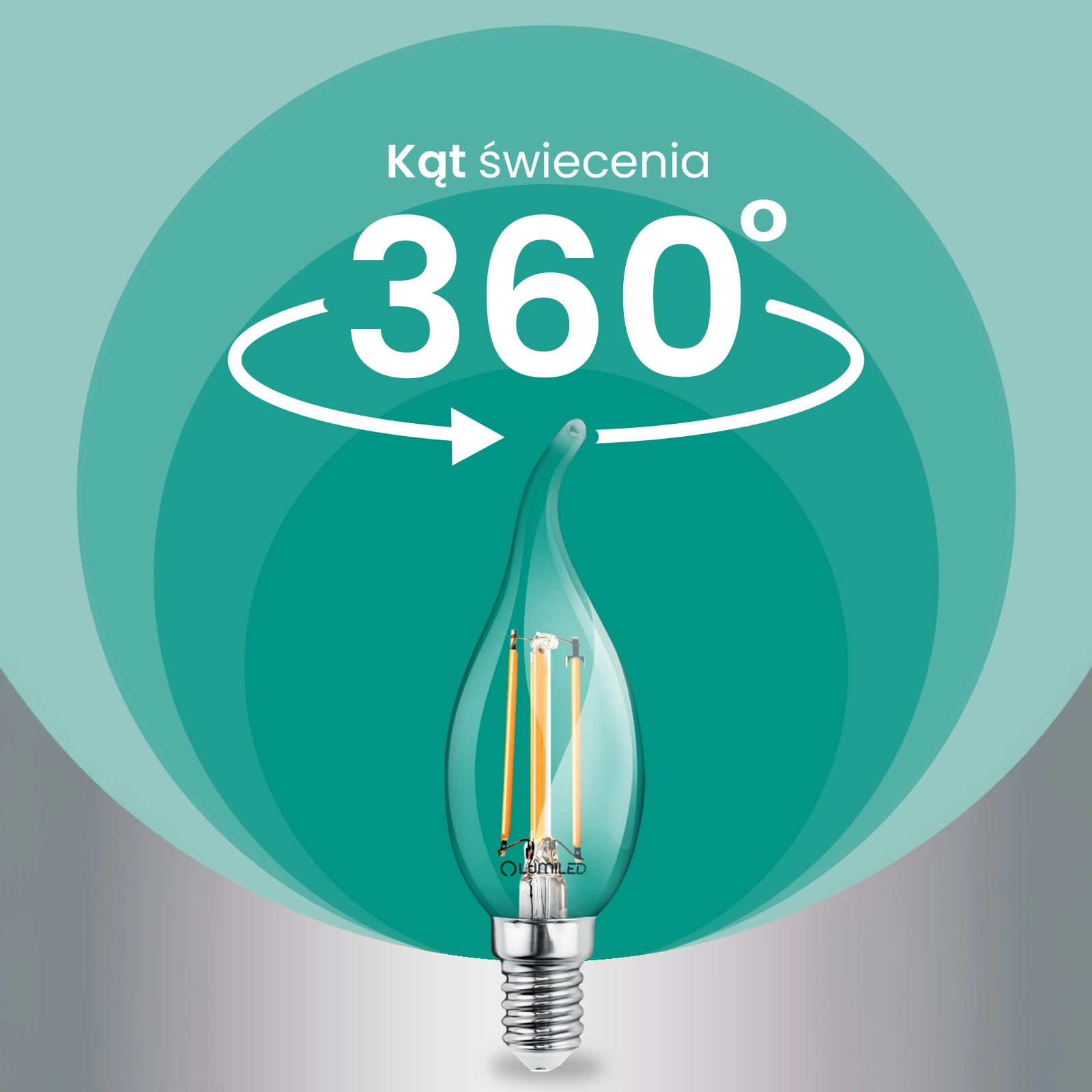 • Pełne 360° rozsyłu światła – równomierny blask bez cieni, w odróżnieniu od żarówek 200–300° tworzących zaciemnione strefy.