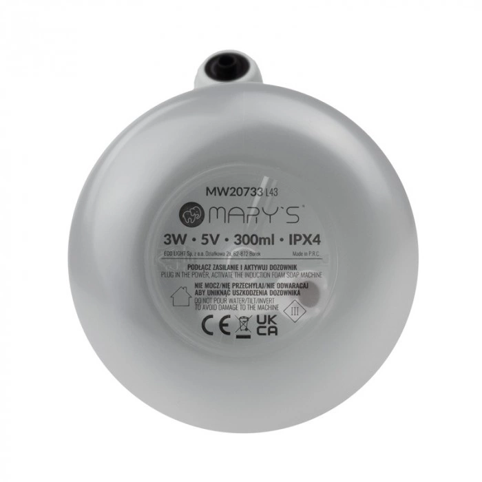 Dozownik Aplikator do Mydła Bezdotykowy dla Dzieci Biały USB Akumulatorowy 1200mAh SŁONIK MARY'S