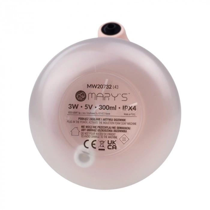 Dozownik Aplikator do Mydła Bezdotykowy dla Dzieci Różowy USB Akumulatorowy 1200mAh SŁONIK MARY'S