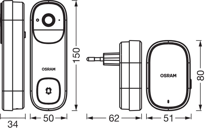 Dzwonek do Drzwi z Kamerą Inteligentny IP66 z Czujnikiem Ruchu Smart+ Wifi Osram