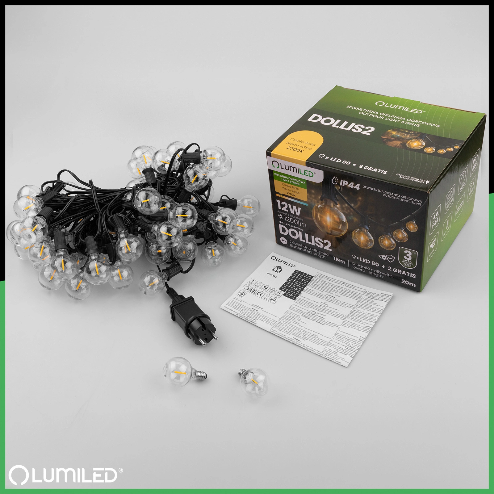 Każdy detal tej girlandy zaprojektowano z myślą o bezproblemowym użytkowniku. Można łatwo wymienić żarówki, co daje pełną kontrolę nad stylem oświetlenia. Gruby, czarny przewód jest odporny na zginanie, promieniowanie UV i zmienne warunki atmosferyczne - IP44. Montaż nie wymaga żadnych narzędzi – wystarczy rozwinąć, zawiesić i podłączyć do prądu. Co więcej, girlanda wyposażona jest w końcówkę do łączenia – dzięki temu możesz tworzyć dłuższe zestawy świetlne bez plątaniny kabli i problemów z zasilaniem.