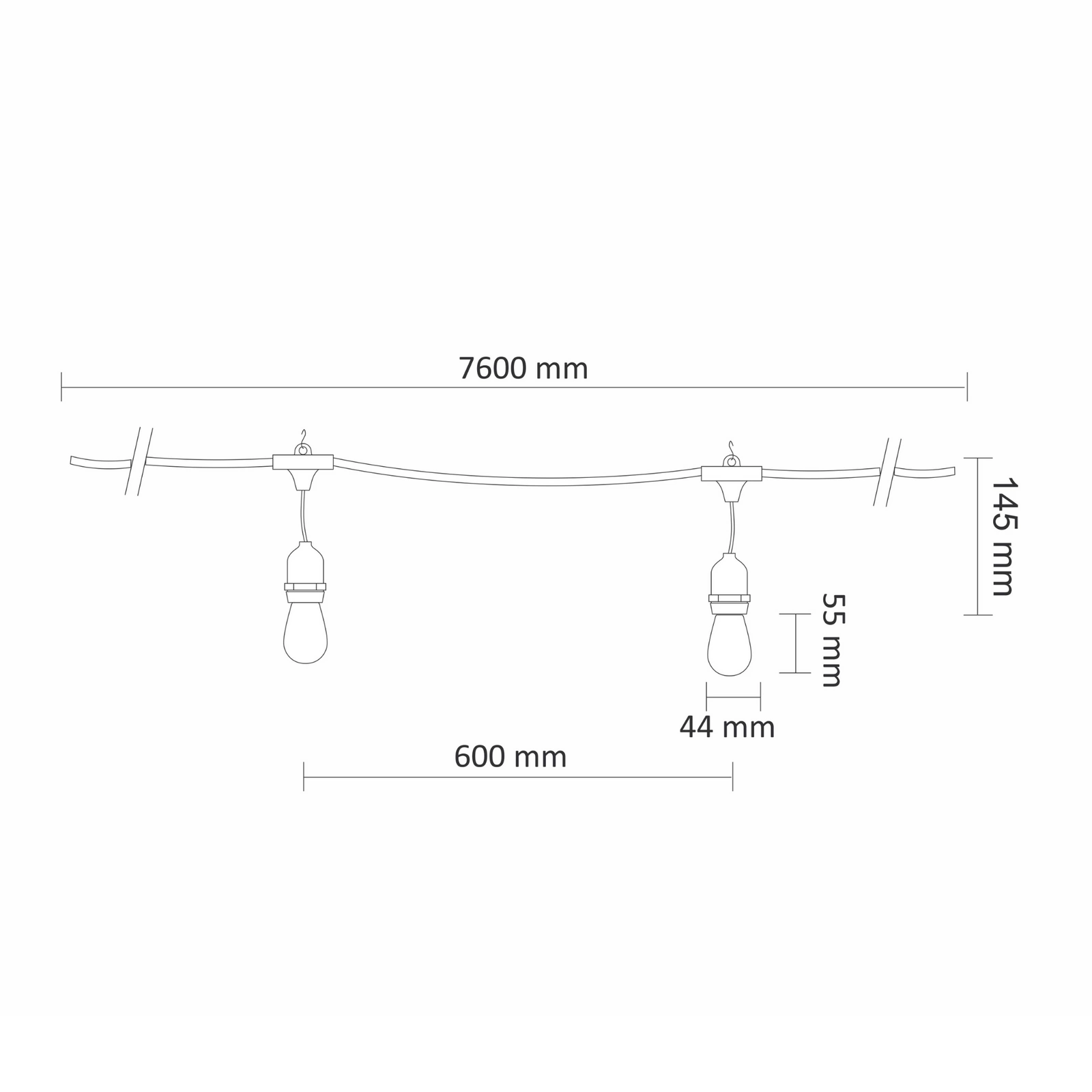 - Łatwa instalacja - Girlanda wyposażona w 10 wymiennych punktów świetlnych z gniazdem E27, co umożliwia szybką i bezproblemową wymianę żarówek.