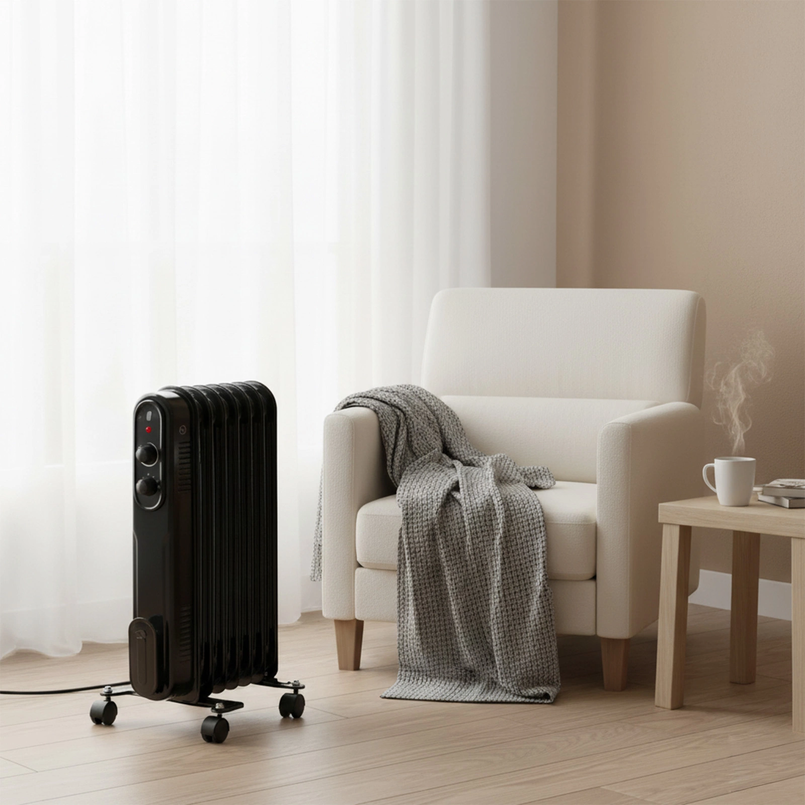 - Idealny do wykorzystania w biurach, zapewnia komfort cieplny podczas pracy w okresach chłodniejszych.