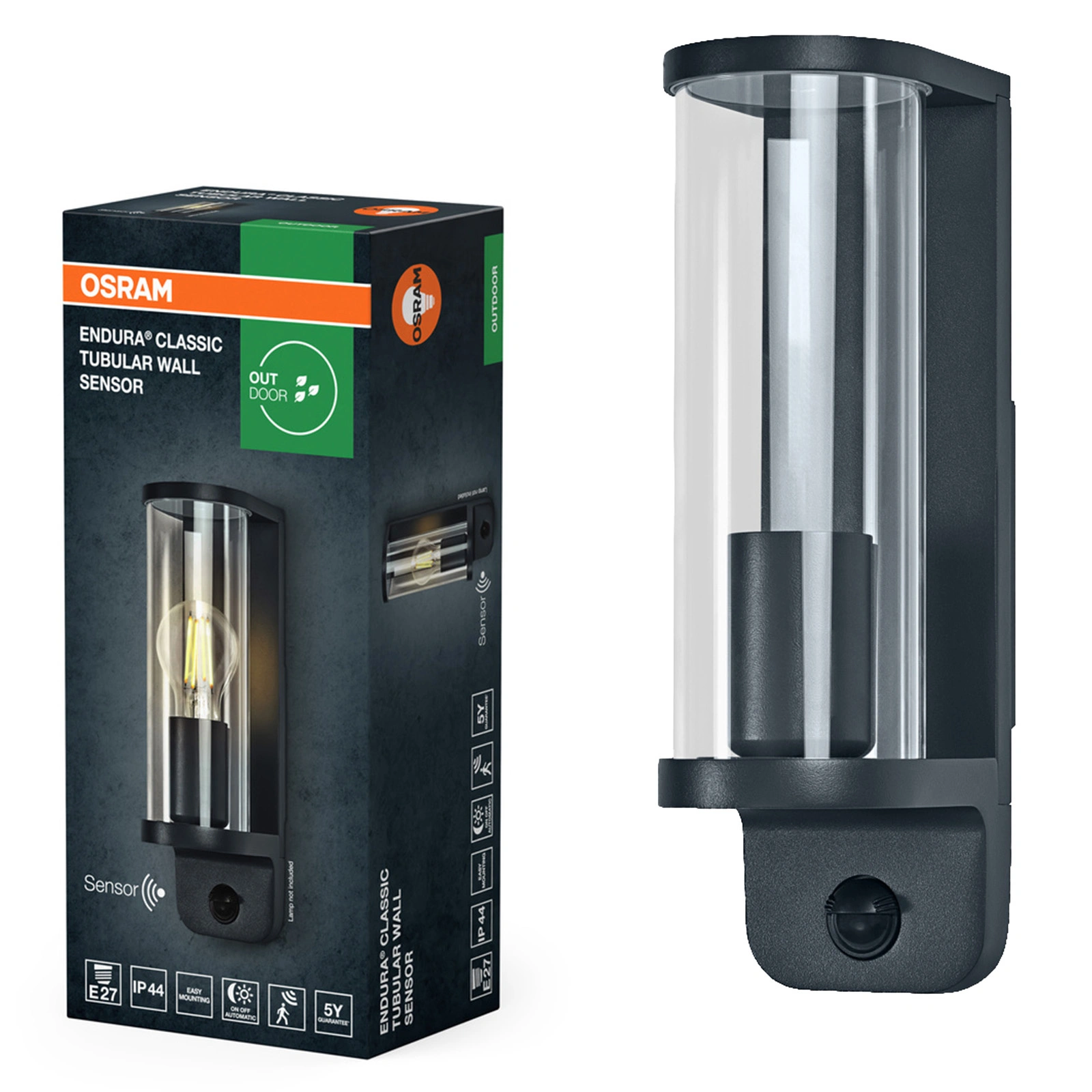 Kinkiet Ogrodowy Lampa Elewacyjna Zewnętrzna E27 Szary IP44 z Czujnikiem Ruchu i Zmierzchu Endura Osram