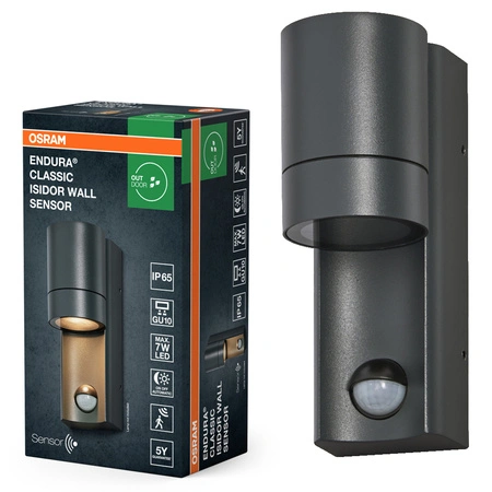 Kinkiet Ogrodowy Lampa Elewacyjna Zewnętrzna GU10 Szary IP65 z Czujnikiem Ruchu i Zmierzchu Endura Osram