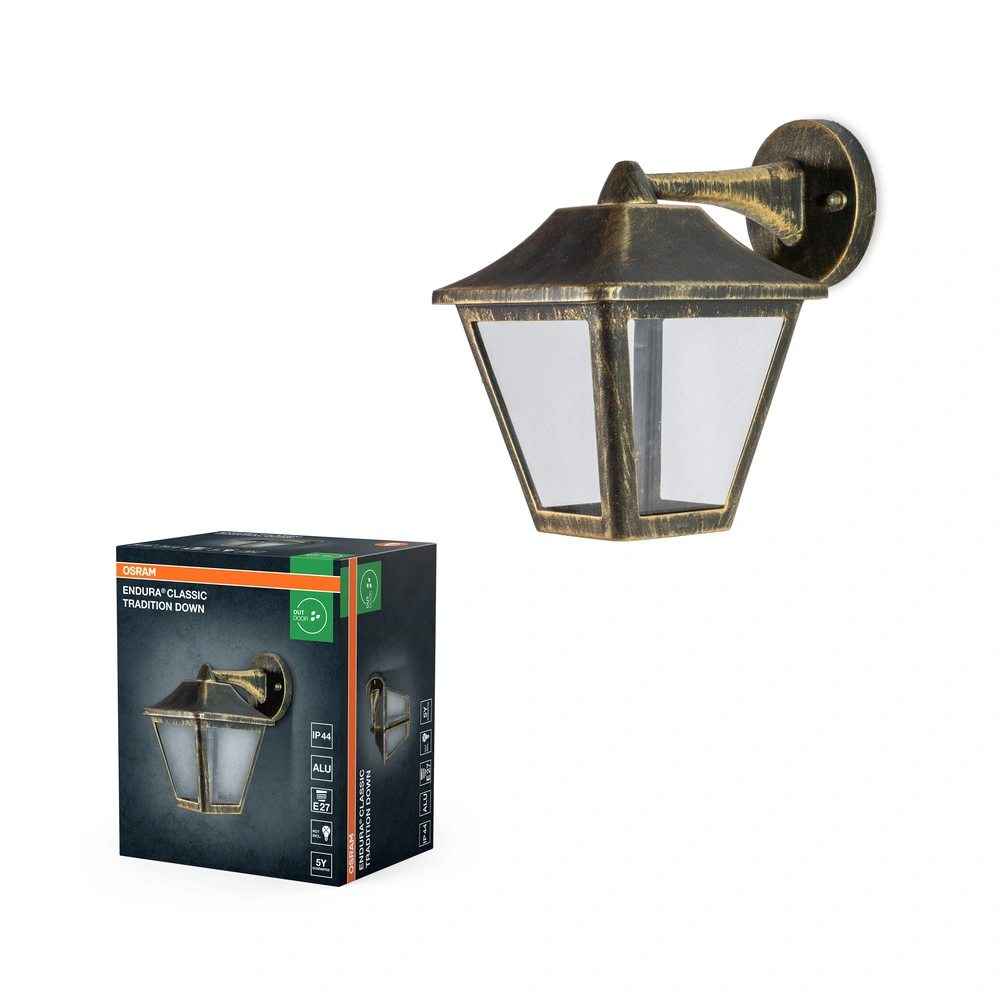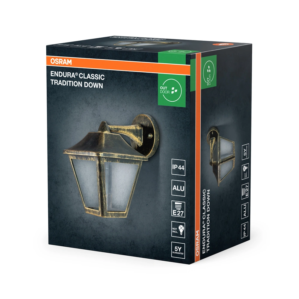 Kinkiet Ogrodowy Lampa Elewacyjna Zewnętrzna Latarnia E27 Czarny Złoty IP44 Endura Osram