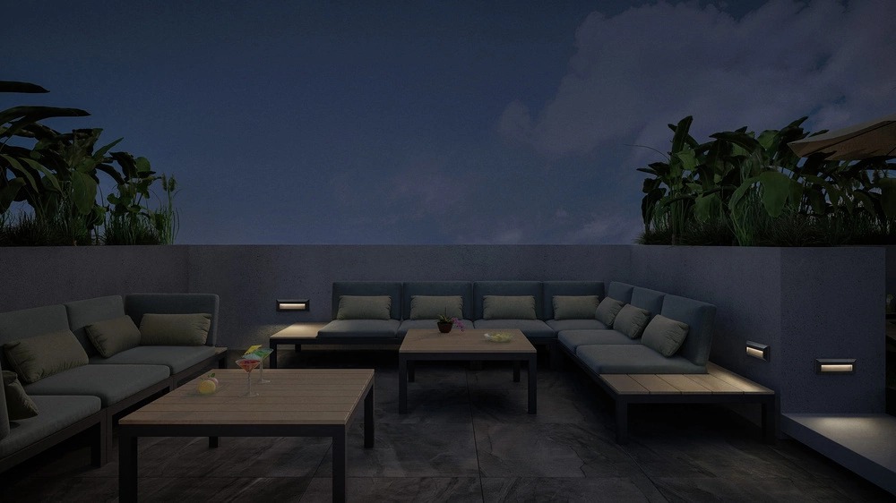 - Oświetlenie tarasów i patio - stwórz przytulną atmosferę i równomierne oświetlenie na zewnętrznych powierzchniach wypoczynkowych.