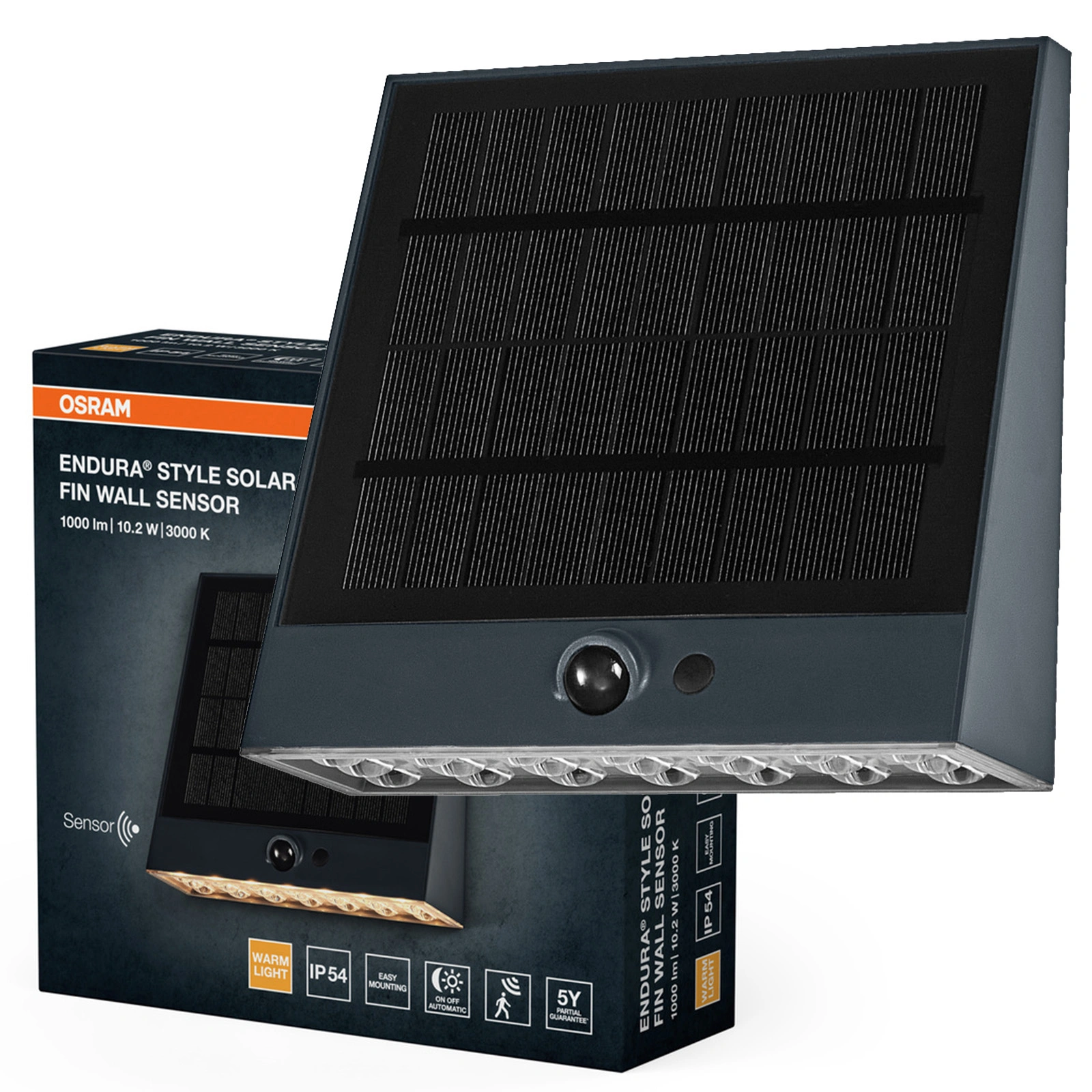 • Inteligentne czujniki: lampa wyposażona w czujnik ruchu i zmierzchu, włączająca światło wtedy, gdy jest to najbardziej potrzebne, co zwiększa bezpieczeństwo oraz wygodę użytkowania.