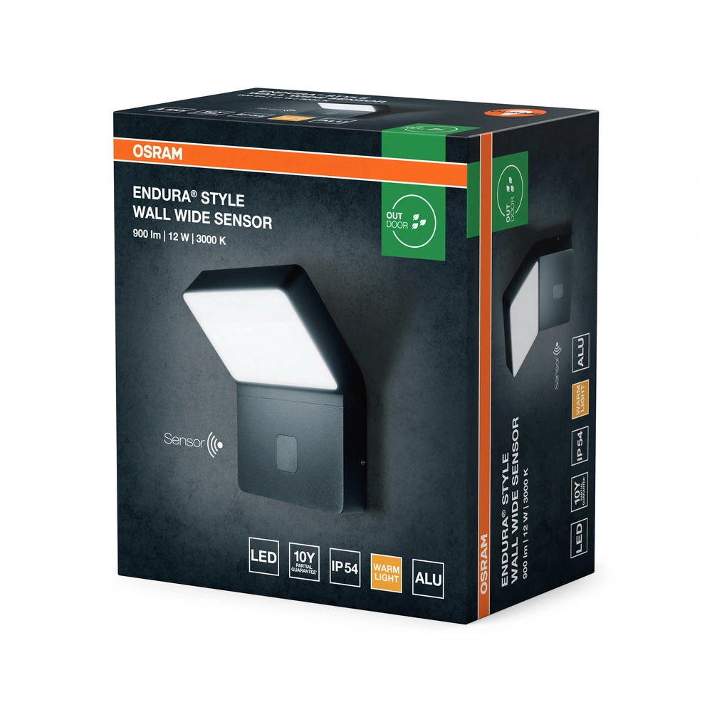Kinkiet Ogrodowy Lampa Elewacyjna Zewnętrzna LED z Czujnikiem Ruchu i Zmierzchu 11.5W 750lm 3000K Ciepła Szary IP44 Endura Osram