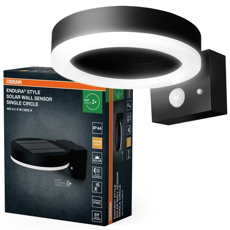 Odkryj nowoczesne oświetlenie zewnętrzne dzięki naszemu kinkietowi ogrodowemu Endura Osram, który łączy w sobie funkcjonalność i estetykę. Ten zewnętrzny kinkiet solarny z czujnikiem ruchu i zmierzchu o mocy 6W gwarantuje piękne, ciepłe światło o temperaturze 3000K o strumieniu świetlnym 400 lm. Nie musisz martwić się o dostępność energii elektrycznej, ponieważ lampa jest zasilana energią solarną. Dzięki trzem trybom pracy możesz dopasować intensywność światła do swoich potrzeb, zapewniając jednocześnie oszczędność energii i dłuższą żywotność dzięki zastosowaniu technologii LED.