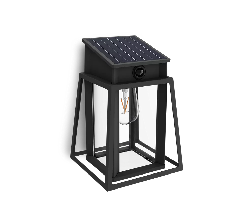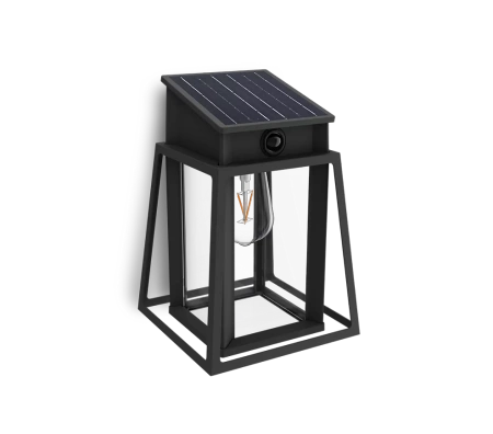 Kinkiet Ogrodowy Lampa Solarna Elewacyjna Zewnętrzna LED 3.2W 470lm 2700K IP44 z Czujnikiem Ruchu i Zmierzchu Czarna Lysin Ultra Efficient Philips