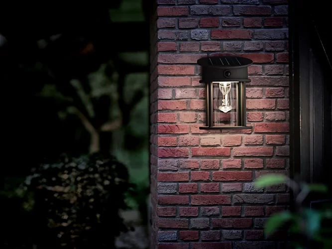 Kinkiet Ogrodowy Lampa Solarna Elewacyjna Zewnętrzna LED 3.2W 470lm 4000K IP44 z Czujnikiem Ruchu i Zmierzchu Czarna Geri Ultra Efficient Philips