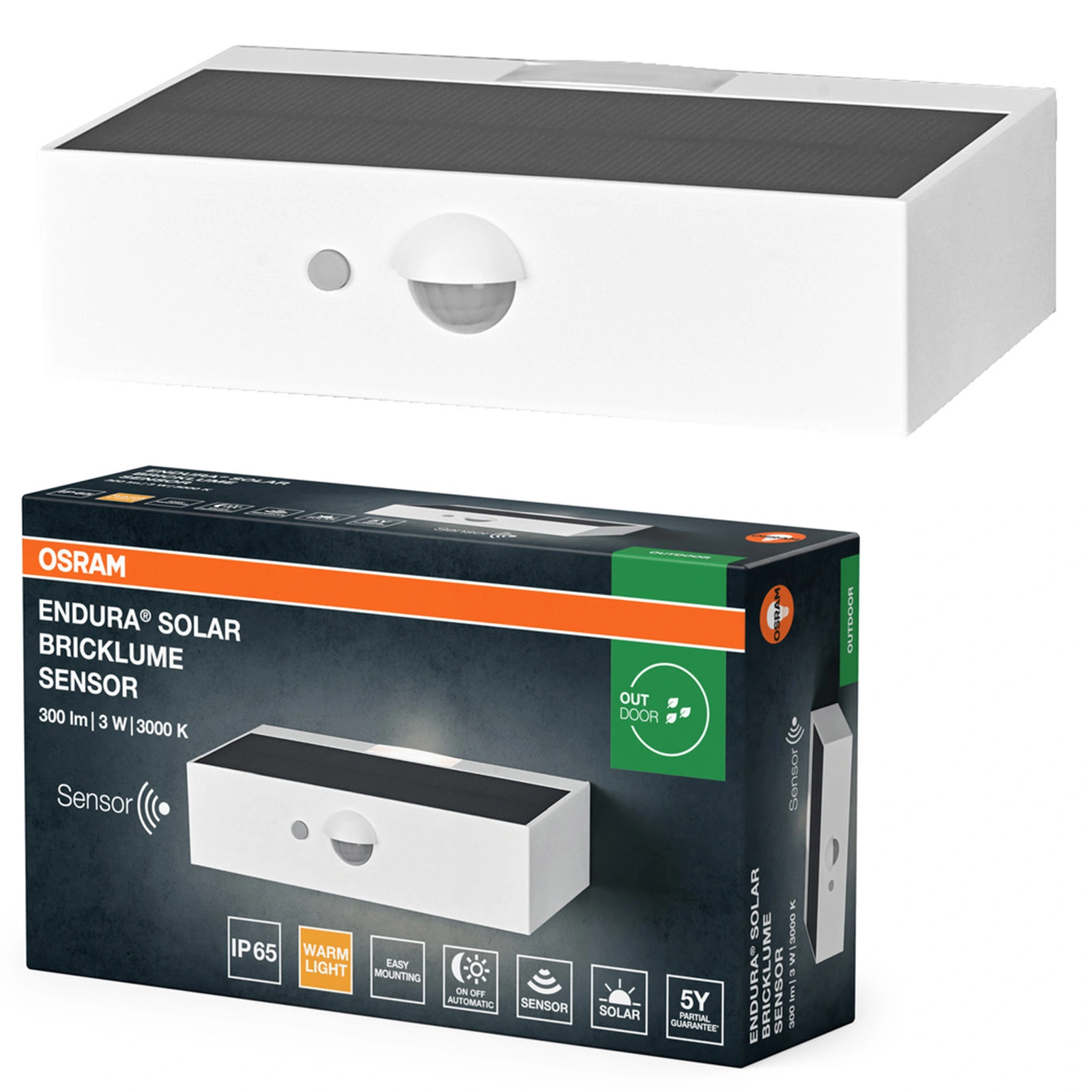 Kinkiet Solarny Ogrodowy Lampa Elewacyjna Zewnętrzna LED z Czujnikiem Ruchu i Zmierzchu 3W 300lm 3000K Ciepła Biały IP65 Endura Osram