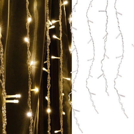 - Elegancka kurtyna świetlna LED – idealna do dekoracji wnętrz, wprowadzająca ciepły klimat dzięki białemu, ciepłemu światłu o temperaturze 2700K.