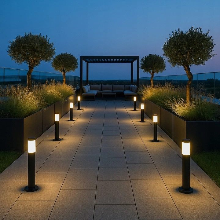 • Oświetlenie ścieżek i alejek w ogrodzie, zapewniające bezpieczne poruszanie się wieczorami.