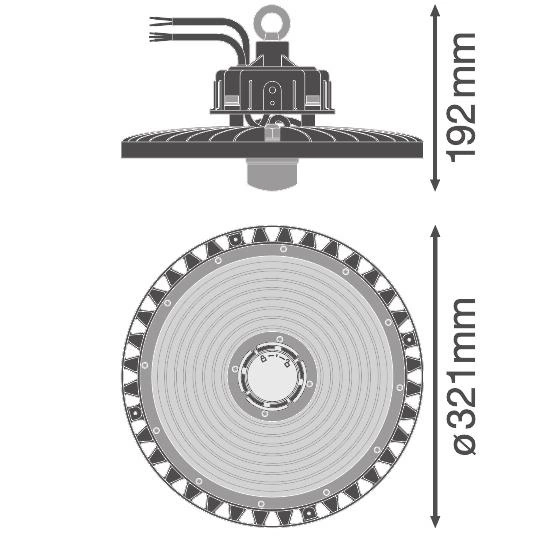 - Oszczędność energii do 64% w porównaniu z konwencjonalnymi oprawami oświetleniowymi typu high bay.