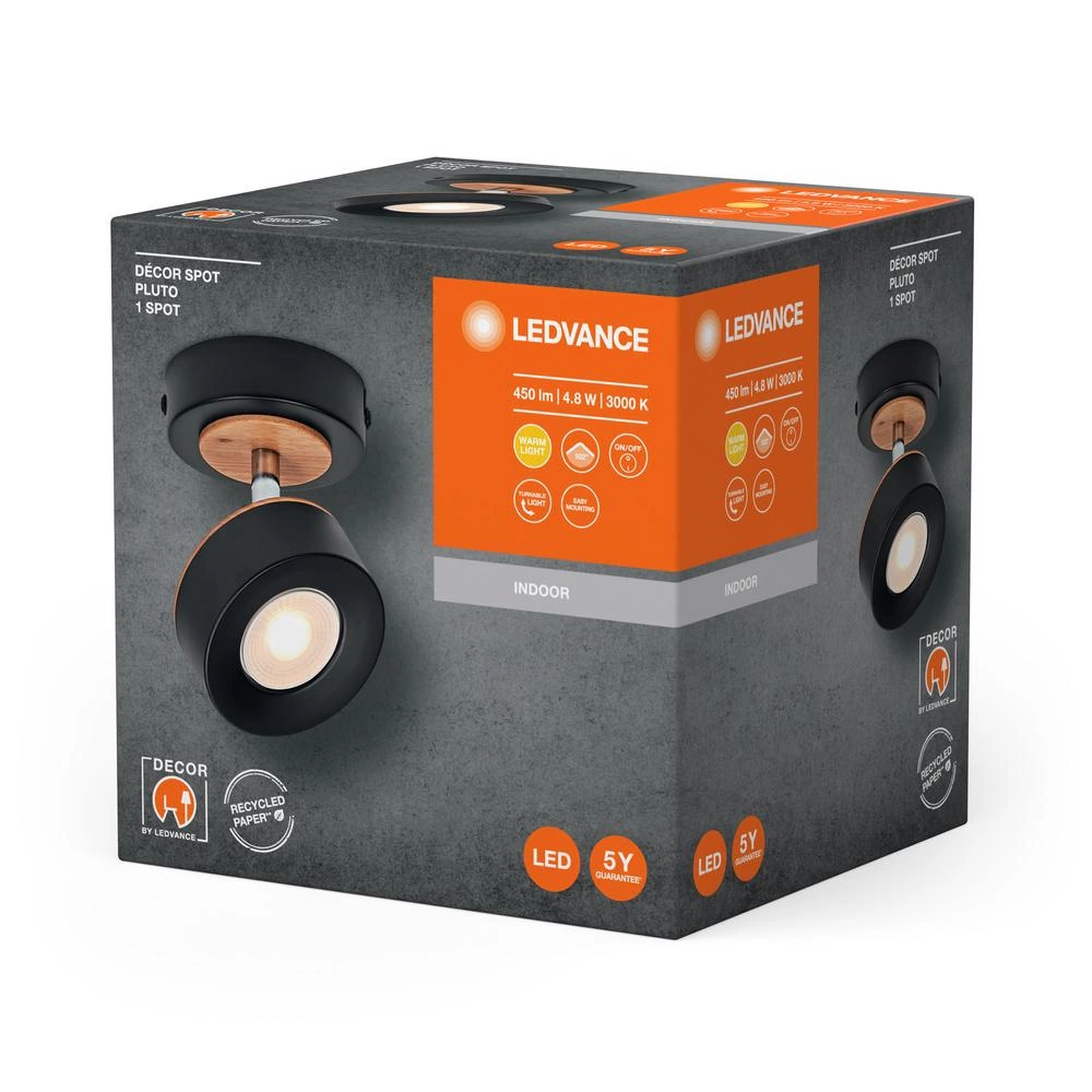 Lampa LED Ścienna Sufitowa Kinkiet Oprawa Natynkowa 4.8W 300lm CCT Dekoracyjna Czarny Spot Pluto Ledvance łączy nowoczesną technologię LED z funkcjonalnym designem. Dzięki swojej zwartej konstrukcji i eleganckiemu wykończeniu w kolorze czarnym, doskonale sprawdzi się w każdym współczesnym wnętrzu. Oferuje strumień świetlny o wartości 300 lm, co zapewnia doskonałe oświetlenie przy niskim zużyciu energii wynoszącym jedynie 4 kWh.