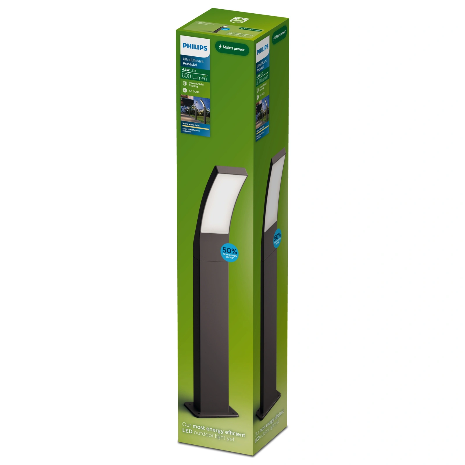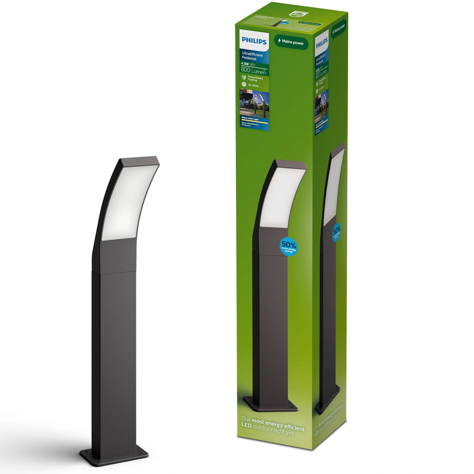 - Efektywne oświetlenie: Lampa ogrodowa zintegrowana z technologią LED o mocy 4.3 W, zapewnia imponujący strumień świetlny 800 lm przy skuteczności 187 lm/W.