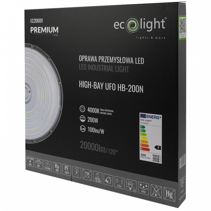 - Wysoka wydajność oświetleniowa: Lampa High Bay LED PREMIUM dostarcza 20000 lumenów przy mocy 200W, co zapewnia doskonałe oświetlenie w dużych przestrzeniach.