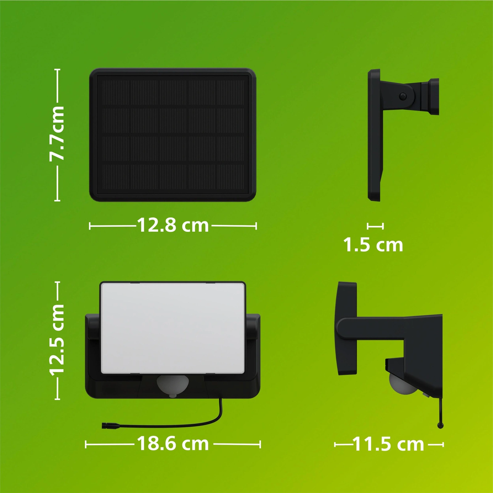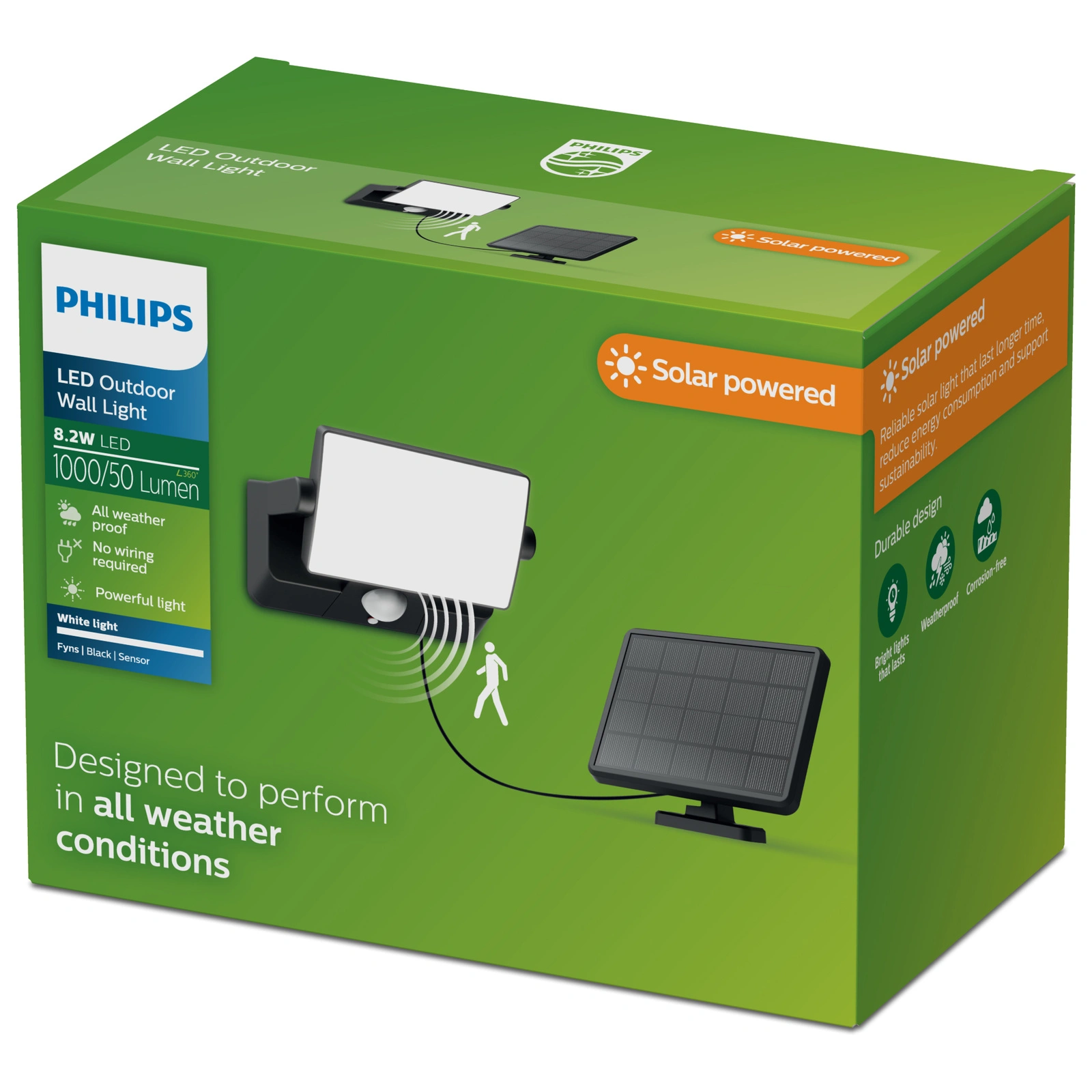 Lampa Solarna Naświetlacz Solarny LED 8.2W 1000lm 3000K Ciepła IP44 Czarny z Czujnikiem Ruchu Fyns Philips
