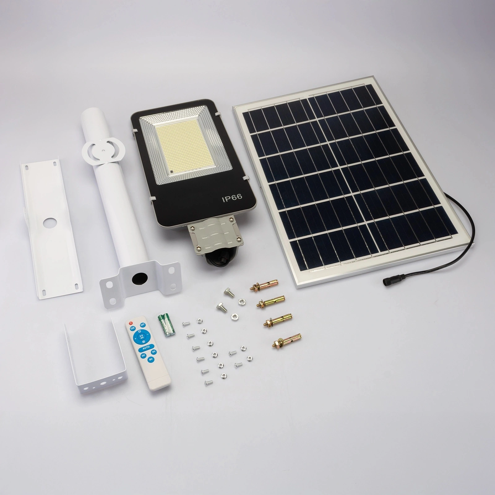 Pełna kontrola w Twoich rękach – dołączony pilot pozwala włączyć lub wyłączyć lampę, regulować jasność (100%, 50%, płynna zmiana +/–), a także ustawić czas świecenia na 3, 5 lub 8 godzin. Dodatkowo wbudowany czujnik zmierzchu automatycznie uruchamia światło, gdy zapada wieczór, zapewniając oświetlenie dokładnie wtedy, gdy jest potrzebne. Funkcja AUTO łączy wygodę i energooszczędność, a w zestawie znajdziesz pilot zasilany dwiema bateriami AAA, gotowy do użycia od razu po montażu.