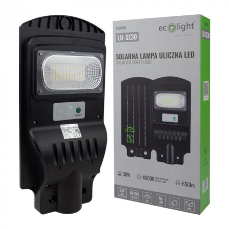 Lampa Solarna Uliczna LED 30W 650lm 4000K Neutralna IP65 z Czujnikiem Ruchu i Zmierzchu ECONOMY Ecolight