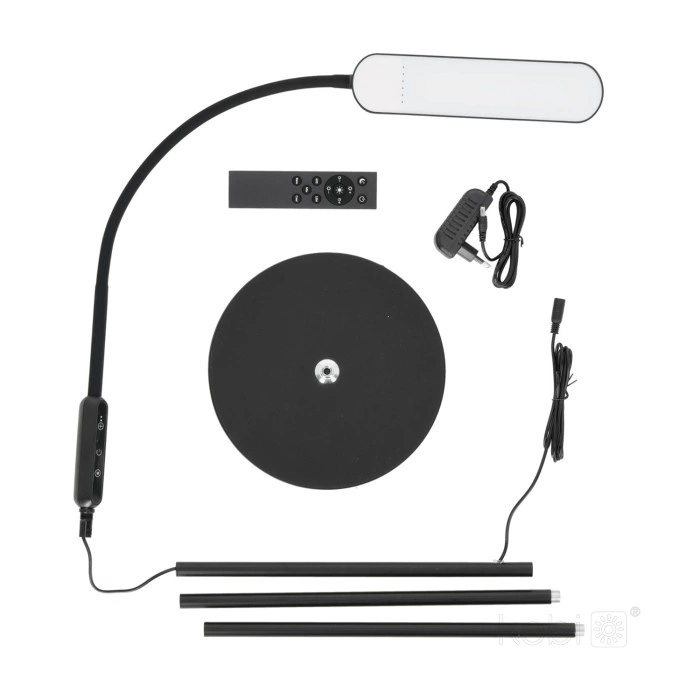 Wyposażona w pilot zdalnego sterowania, pozwala sterować światłem bez wstawania z miejsca. Trzy tryby barwy światła – 3000K (ciepła), 4000K (neutralna) i 6500K (zimna) – oraz płynne ściemnianie umożliwiają stworzenie idealnych warunków w każdej sytuacji. Modułowa konstrukcja z trzema segmentami (po 36 cm) pozwala regulować wysokość, a regulowana głowica zapewnia swobodę ustawienia kąta świecenia.