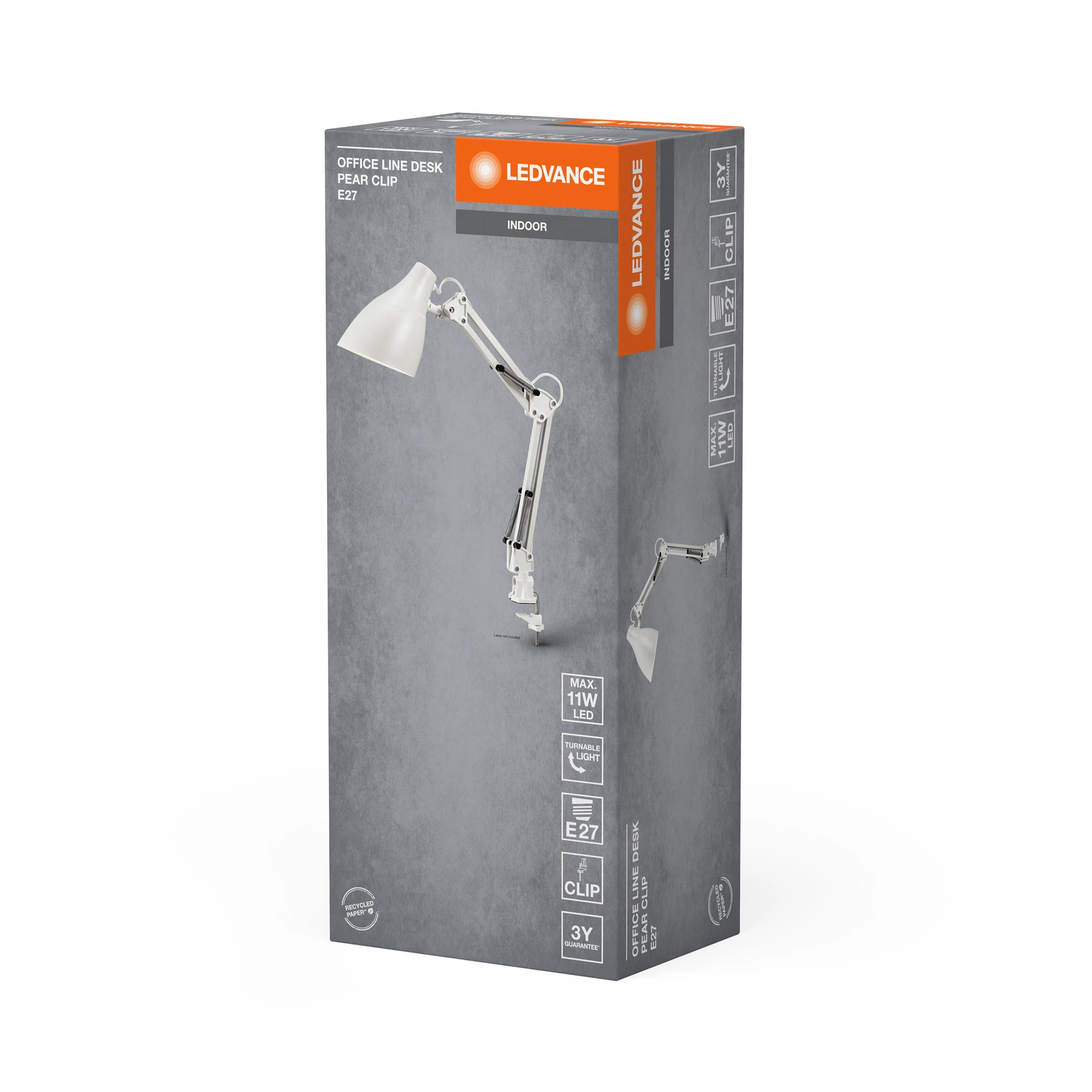 Lampa stołowa Ledvance Office Line to idealne rozwiązanie dla osób poszukujących funkcjonalnego oraz stylowego oświetlenia biurkowego. Wykonana z wysokiej jakości metalu oraz akrylonitryl-butadien-styrenu (ABS), zapewnia trwałość i estetyczny wygląd. Dzięki wyposażeniu w trzonek E27 możliwe jest użycie różnych źródeł światła, co czyni ją uniwersalnym wyborem do każdego wnętrza. Lampa jest w kolorze biały, co nadaje jej subtelnej elegancji.