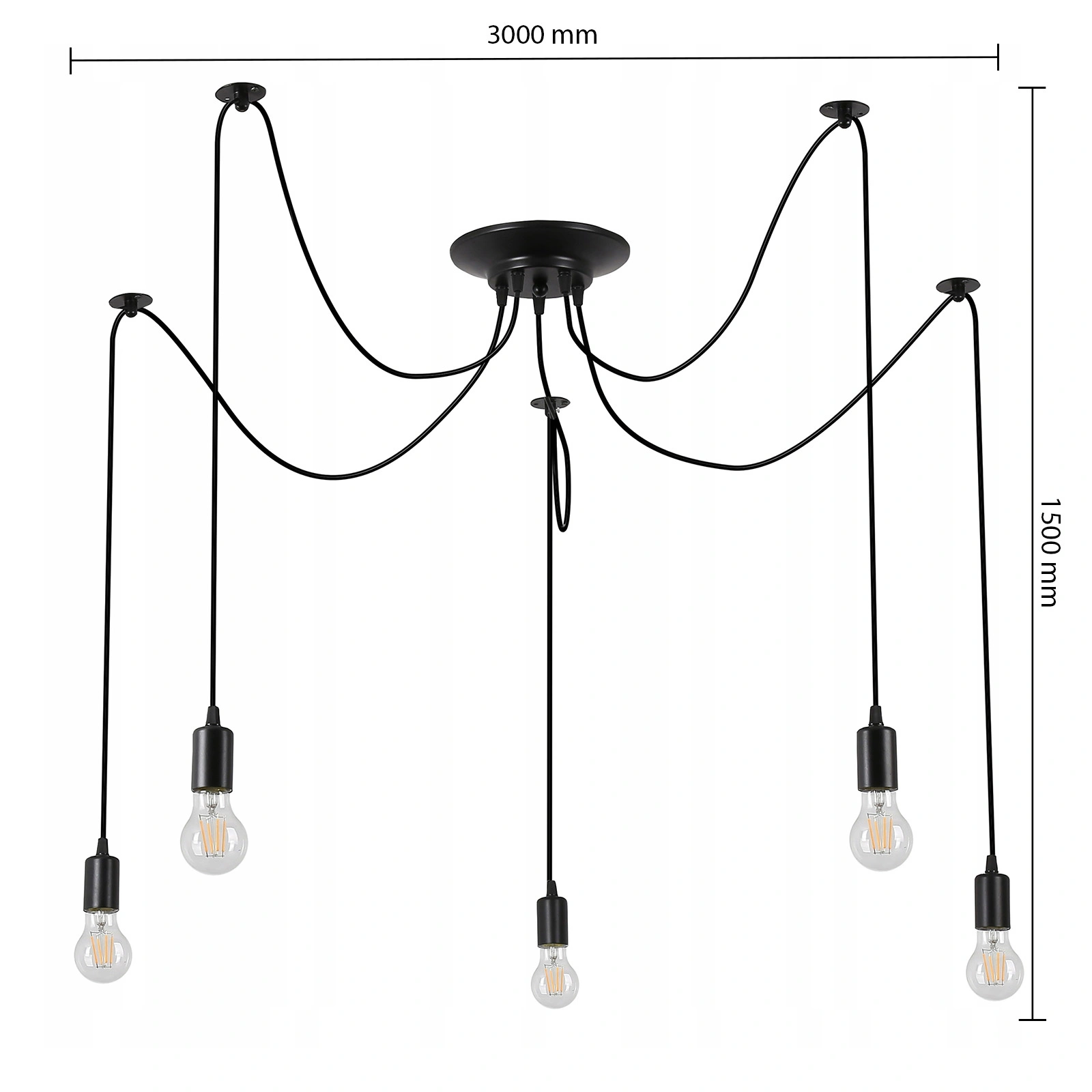 • Funkcjonalność - Wyposażona w 5 punktów świetlnych na wymienne trzonki E27, co zapewnia równomierne oświetlenie oraz możliwość regulacji natężenia światła.