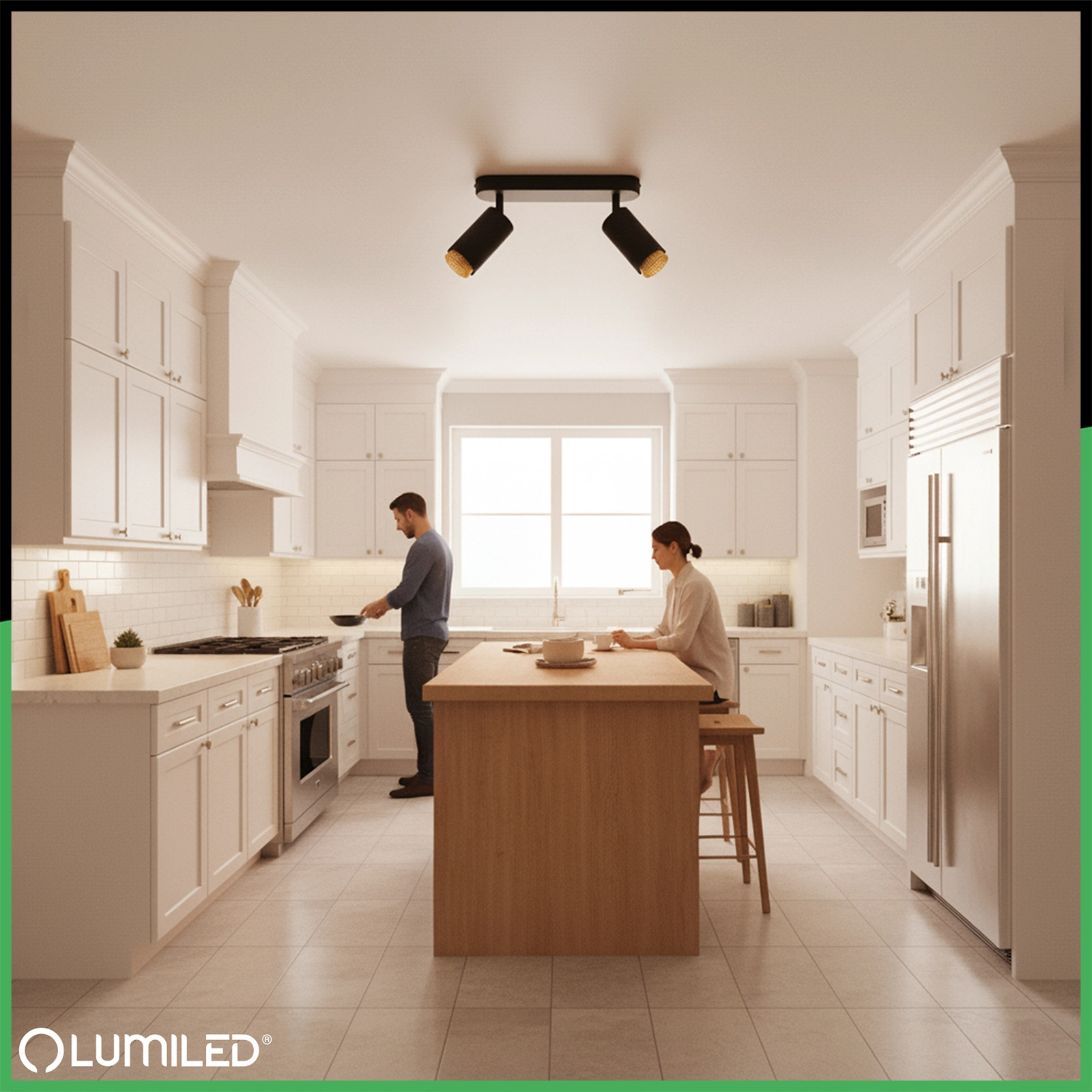 Nasza lampa posiada cztery gniazda GU10, które pozwalają wybrać żarówki LED o dowolnej barwie i mocy – od ciepłych po zimne, także w wersji smart. Maksymalna moc 2x12W to jasne, energooszczędne światło i niższe rachunki. Gotowa kostka GU10 przyspiesza montaż, dzięki czemu instalacja jest prosta i nie wymaga dodatkowych elementów.