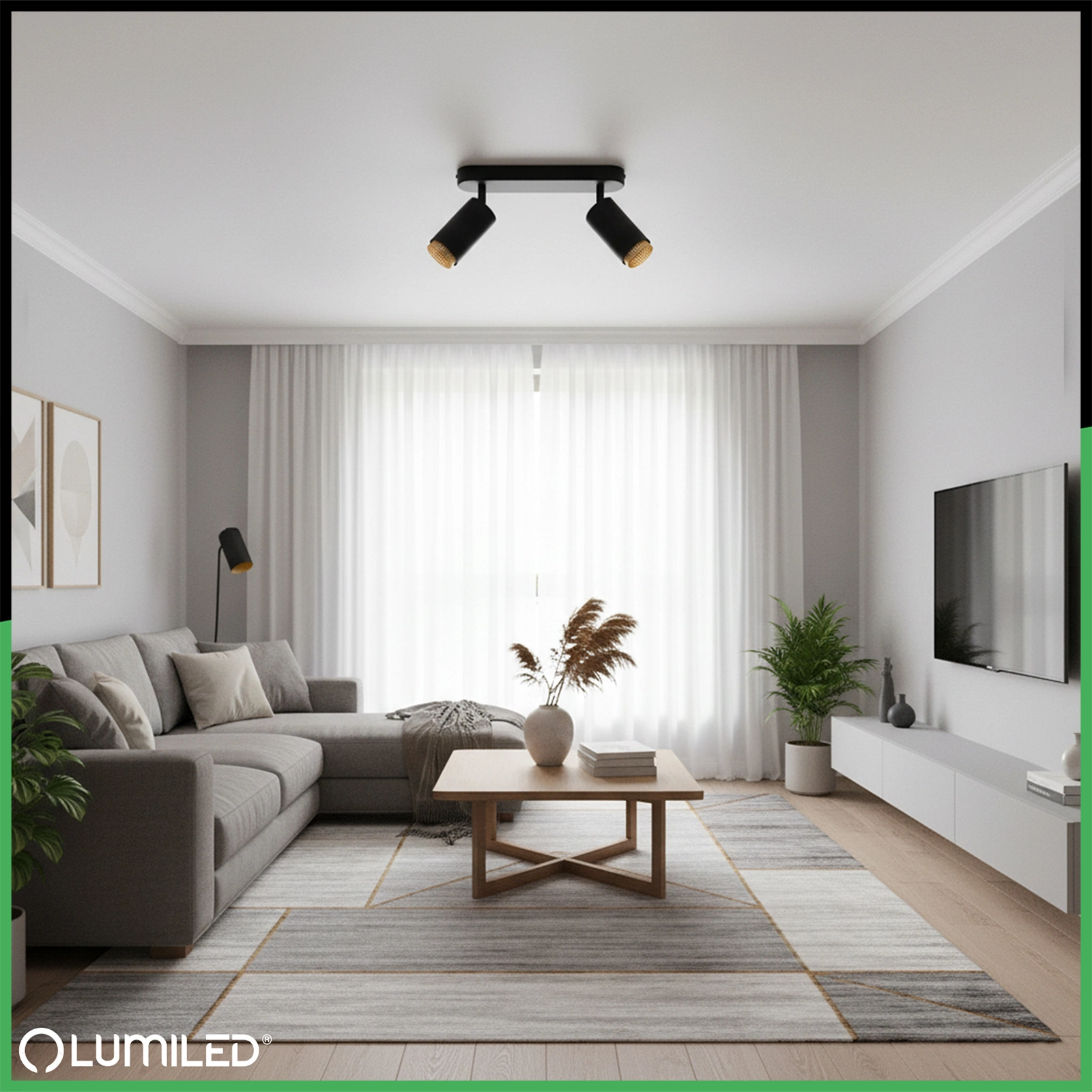 Lampa sufitowa ELIGIS to połączenie nowoczesnego stylu i praktycznej funkcjonalności. Dwa regulowane reflektory pozwalają oświetlić zarówno całe pomieszczenie, jak i wybrane jego fragmenty, tworząc wyjątkowy nastrój. Zastosowanie popularnych żarówek GU10 daje pełną swobodę w wyborze barwy i mocy światła, a eleganckie, czarne wykończenie sprawia, że plafon idealnie pasuje do nowoczesnych aranżacji. Solidna, metalowa konstrukcja zapewnia trwałość i długie użytkowanie, dzięki czemu ELIGIS to inwestycja, która łączy styl z praktycznym zastosowaniem w codziennym życiu.