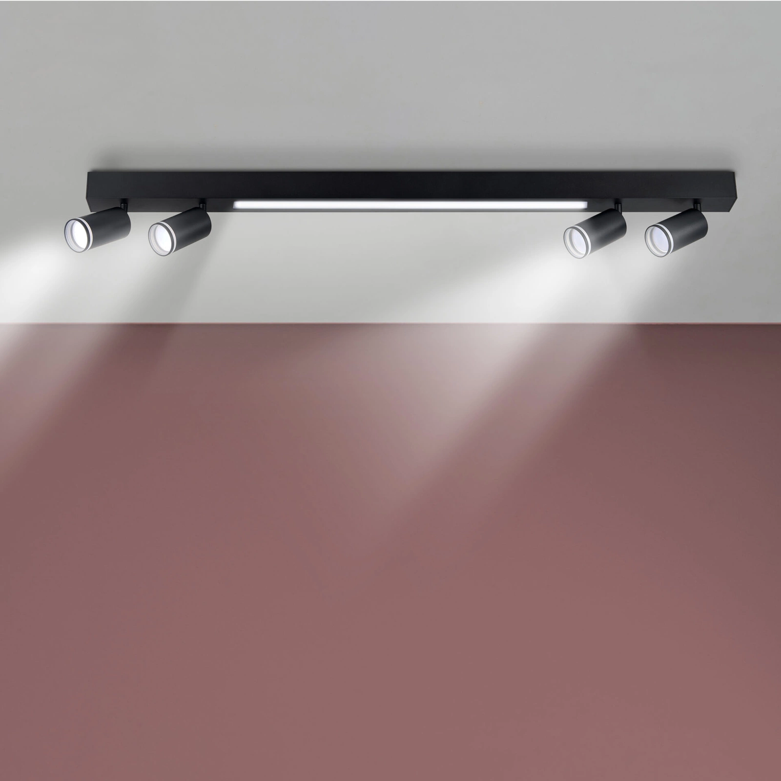 - Wszechstronne oświetlenie: Łączy reflektory z wbudowaną listwą LED o neutralnej białej barwie światła 4000K, idealne do wielu pomieszczeń.