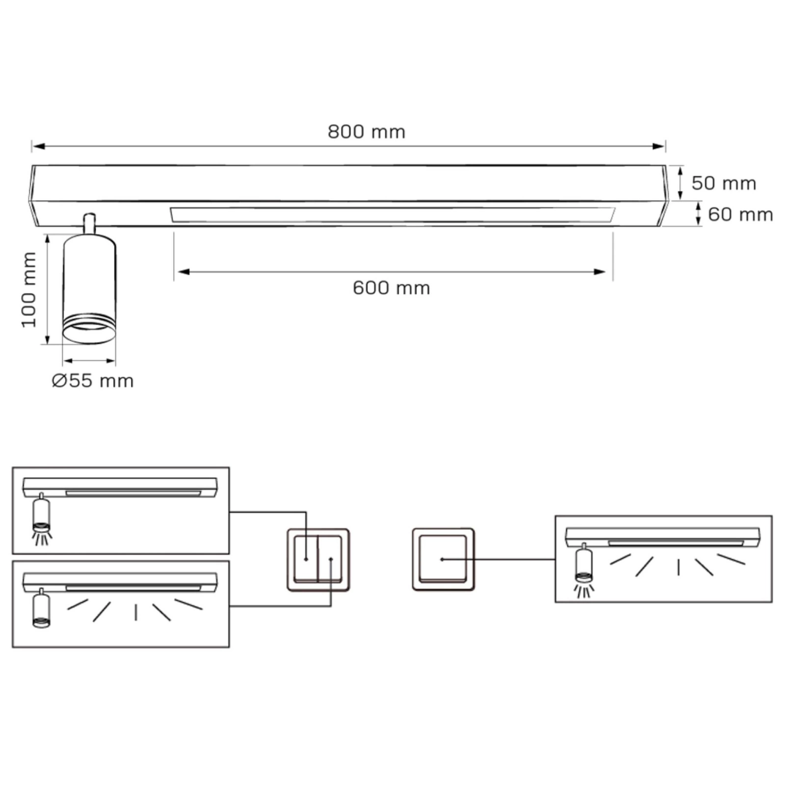 - Dwa rodzaje oświetlenia: Możliwość oddzielnego sterowania reflektorem i wbudowaną listwą LED pozwala na uzyskanie elastycznego oświetlenia zgodnie z preferencjami.