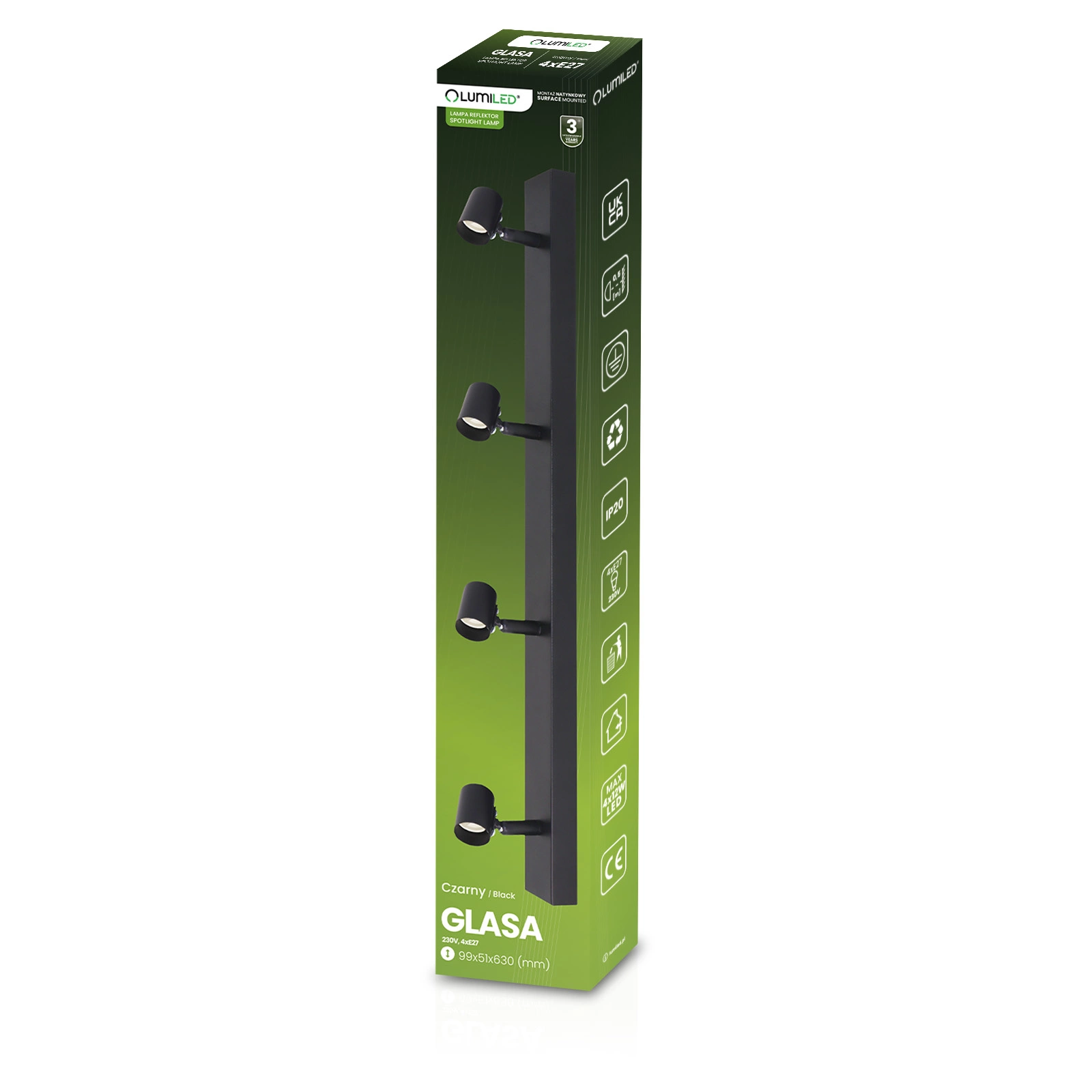 Lampa sufitowa reflektor GLASA marki Lumiled to połączenie nowoczesnego stylu i funkcjonalności. Dzięki montażowi sufitowemu świetnie sprawdzi się jako elegancka oprawa, która rozświetli wnętrze i podkreśli jego charakter. Solidna metalowa konstrukcja w kolorze czarnym gwarantuje trwałość i estetykę, czyniąc z niej praktyczne rozwiązanie do salonu, biura, korytarza czy sypialni.