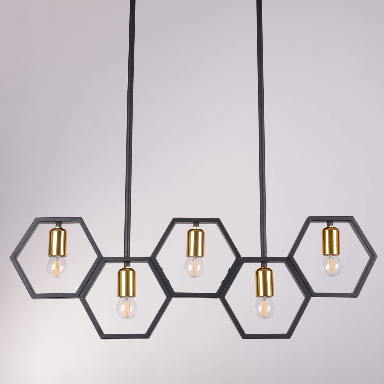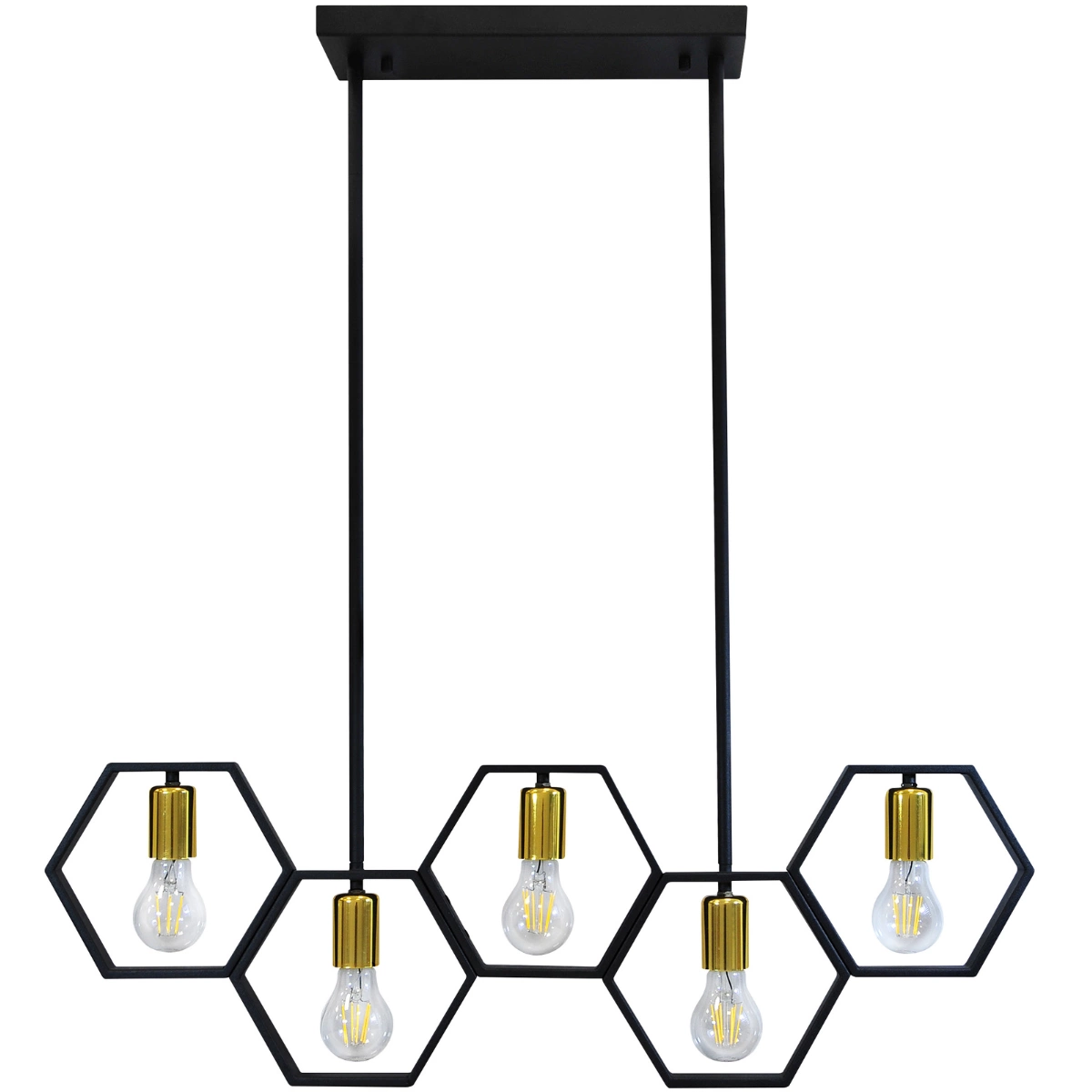 Lampa Sufitowa Wisząca Dekoracyjna 5x E27 Czarna Złota Honey Sanico Goldlux