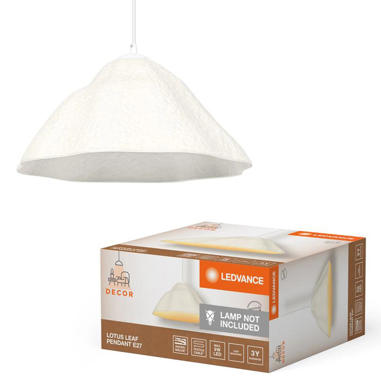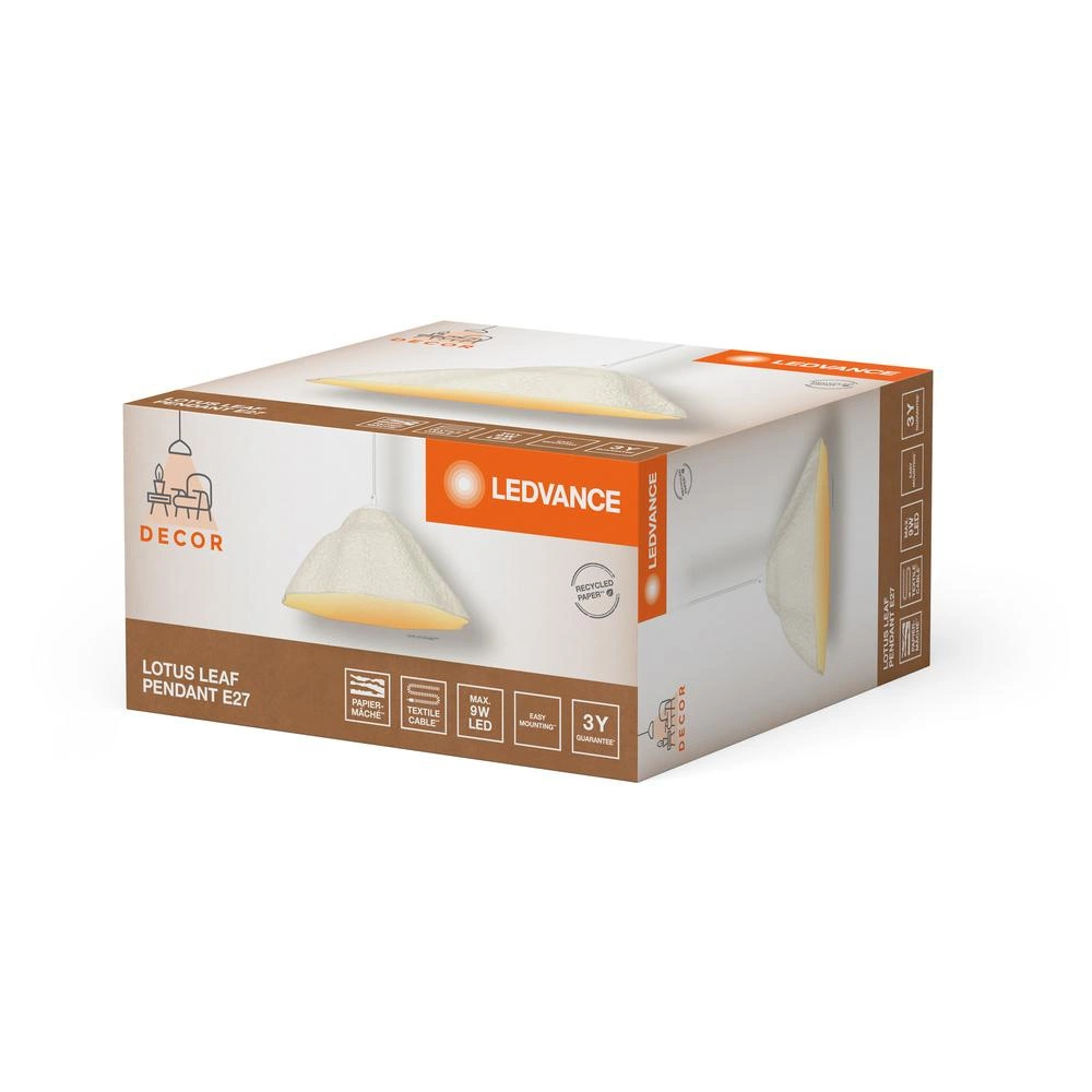 Lampa sufitowa wisząca Decor Ledvance to eleganckie i funkcjonalne rozwiązanie dla wnętrz, które wymagają subtelnego oświetlenia. Wyposażona w trzonek E27, lampa dostosowana jest do różnorodnych źródeł światła o napięciu znamionowym 220-240 V i częstotliwości 50-60 Hz. Wykonana z wysokiej jakości materiałów, takich jak papier i stal, zapewnia trwałość i estetykę. Prosty montaż i podwieszany sposób instalacji sprawiają, że lampa świetnie komponuje się w nowoczesnych oraz klasycznych aranżacjach.