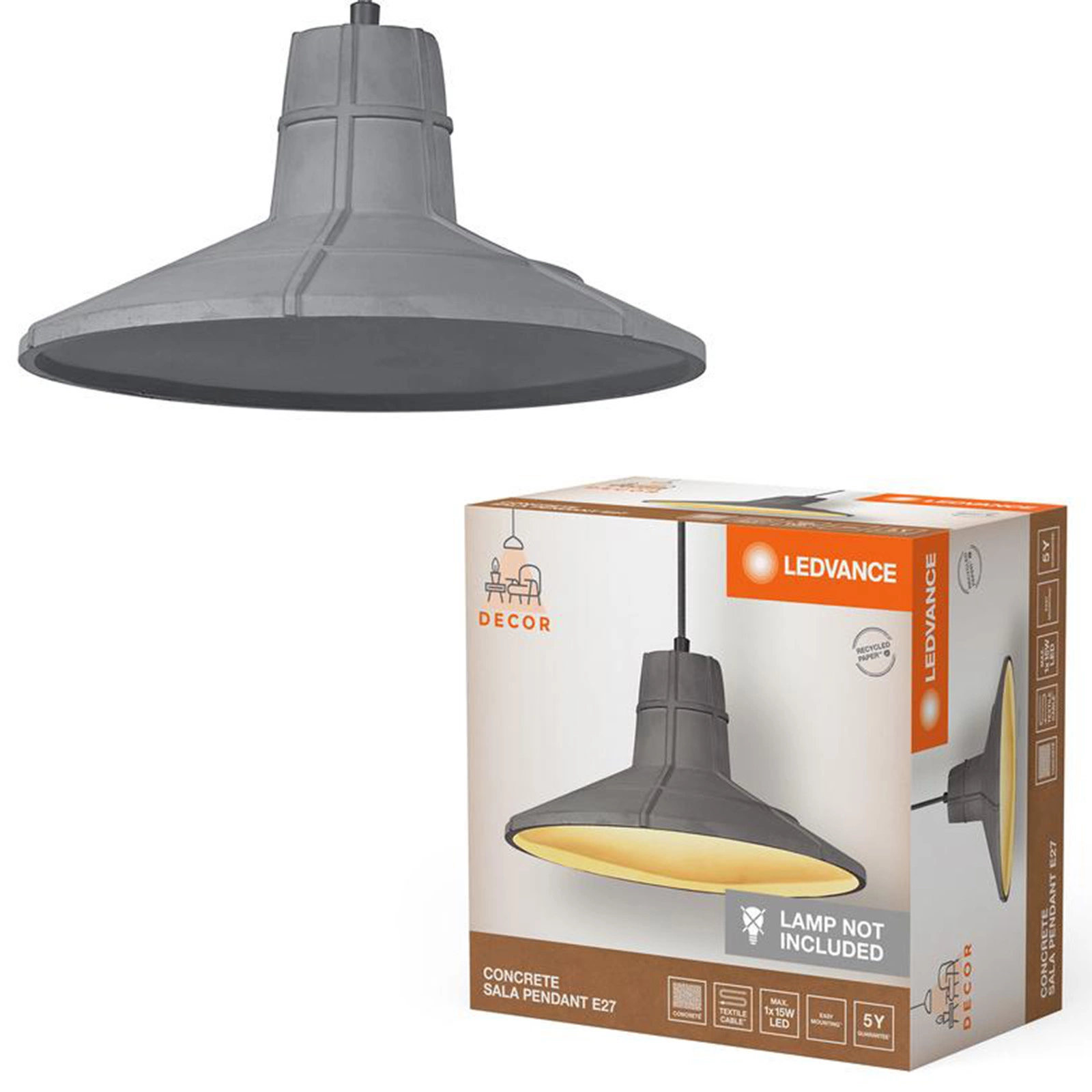 Lampa sufitowa wisząca E27 Decor Ledvance to eleganckie połączenie nowoczesnego designu oraz najwyższej jakości materiałów. Wykonana z betonu i stali, świetnie wpisuje się w industrialny styl wnętrz. Wykończenie w szarym kolorze dodaje jej wyjątkowego charakteru, co czyni ją idealnym wyborem do każdego pomieszczenia. Dzięki możliwości wymiany źródła światła, można dostosować jej parametry do indywidualnych potrzeb oświetleniowych.