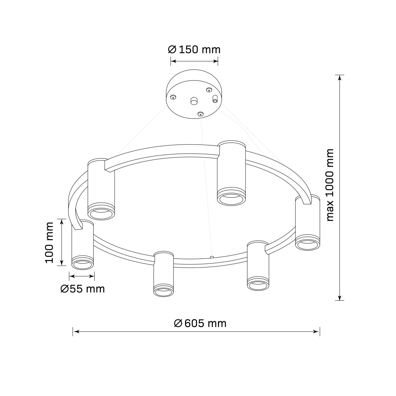 - Wysoka funkcjonalność: Dzięki sześciu punktom świetlnym lampa efektywnie oświetla przestrzeń, doskonale sprawdzając się w salonie, jadalni, sypialni czy biurze.