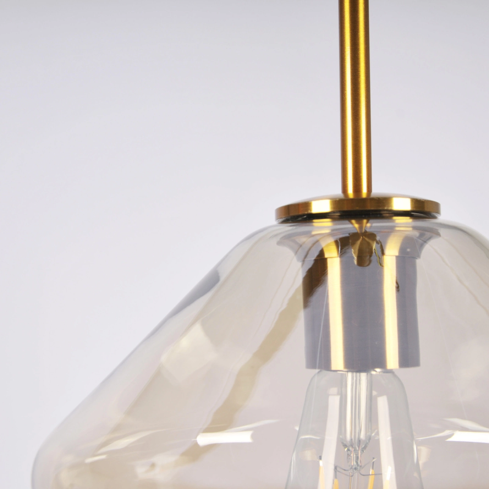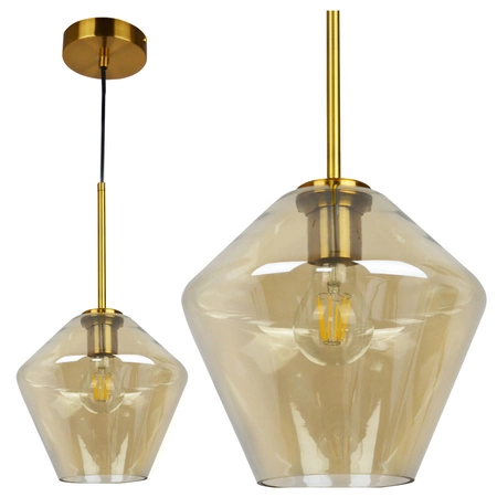 - Elegancki design: Połączenie złotej podstawy z bursztynowym szklanym kloszem tworzy wyjątkowo stylową i nowoczesną lampę, idealną do współczesnych wnętrz.